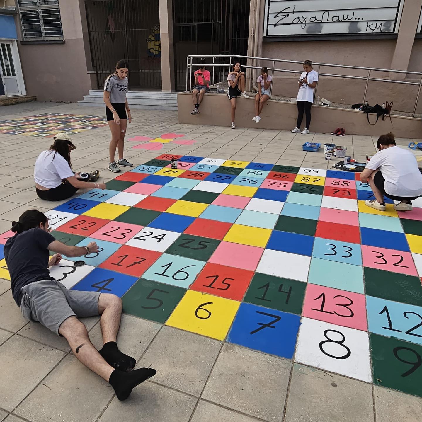 Διακόσμησαν με επιδαπέδια παιχνίδια αυλές σχολείων (2ο Δημοτικό και το 5ο Νηπιαγωγείο) αλλά και δημόσια κτίρια, όπως το Διοικητήριο Μαρίνας και τις Δημοτικές Αποθήκες. Επίσης, γεμίσανε χρώμα και θετικά μηνύματα τον παραλιακό δρόμο της πόλης μας, ομορφαίνοντας τη διαδρομή των περαστικών με πινακίδες!
