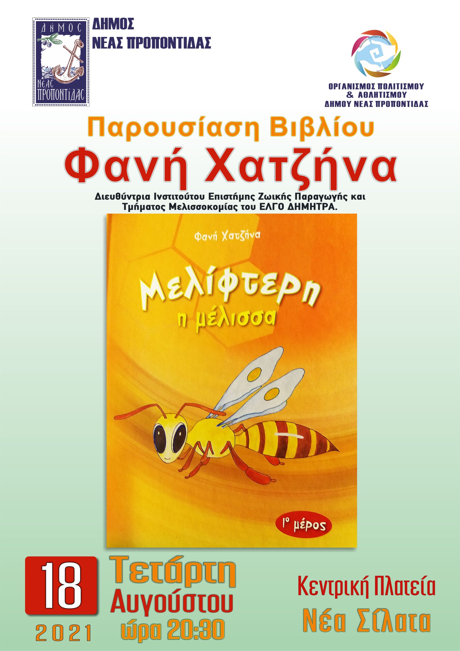 Το παιδικό βιβλίο της Φανής Χατζήνα «Μελίφτερη η Μέλισσα» θα παρουσιαστεί την Τετάρτη 18 Αυγούστου 2021 και ώρα, 20:30 στην Κεντρική Πλατεία των Σιλάτων.