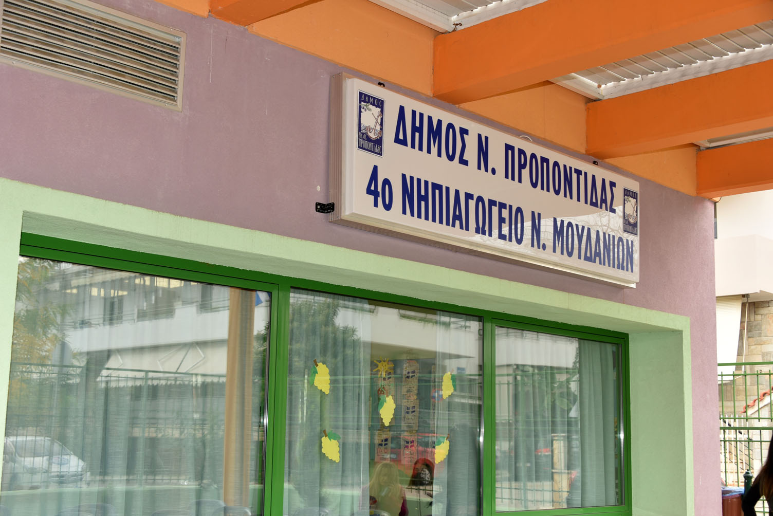 Το 4ο Νηπιαγωγείο Νέων Μουδανιών εγκαινίασαν ο Περιφερειάρχης Κεντρικής Μακεδονίας Α. Τζιτζικώστας , ο Δήμαρχος Νέας Προποντίδας Εμ. Καρράς και ο Πρόεδρος της Κοινότητας Ν. Μουδανιών Νίκος Θεργιός, παρουσία του Αντιπεριφερειάρχη Χαλκιδικής Γιάννη Γιώργου, της Περιφερειακής συμβούλου Κατερίνας Ζωγράφου, Δημοτικών και Κοινοτικών συμβούλων, εκπαιδευτικών και γονέων του σχολείου.