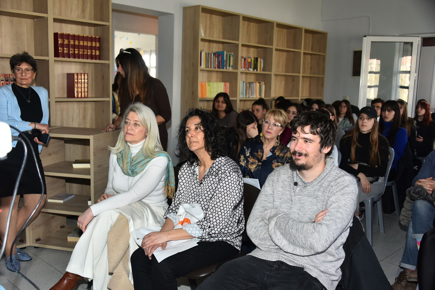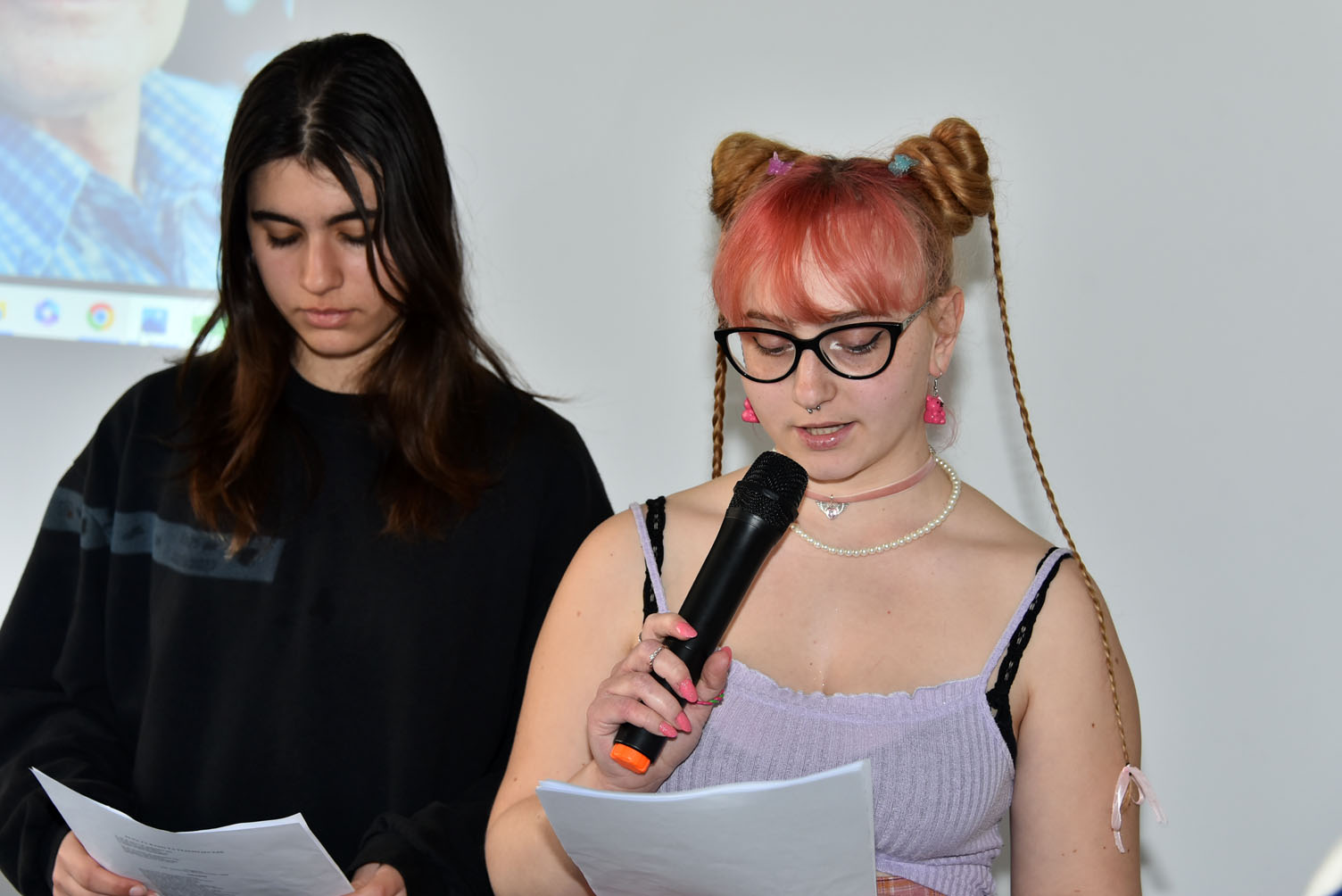 Συμμετείχαν οι μαθητές Γ’ Λυκείου της Κατεύθυνσης ανθρωπιστικών σπουδών του ΓΕΛ Ν. Μουδανιών, οι οποίοι στο δεύτερο μέρος της εκδήλωσης απήγγειλαν ποιήματα που έγραψαν οι ίδιοι ή οι συμμαθητές τους αποσπώντας τις καλύτερες εντυπώσεις.