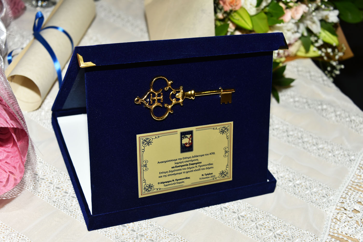 Ο Δήμαρχος Μ. Καρράς εξήρε το έργο και την προσωπικότητα της κας Ζαφειρίου που ξεκινώντας από τη Ν. Τρίγλια κατάφερε να φτάσει στα πέρατα του κόσμου και να ανήκει στα ηγετικά στελέχη στον χώρο της αυτοκινητοβιομηχανίας. Με μόνο όπλο την πίστη στον εαυτό της τα κατάφερε αποτελώντας ένα απόλυτα υγιές πρότυπο για τα παιδιά μας. Είναι μία λαμπρή επιστήμονας, μία μάνα τριών παιδιών, παράδειγμα για κάθε σύγχρονη γυναίκα.