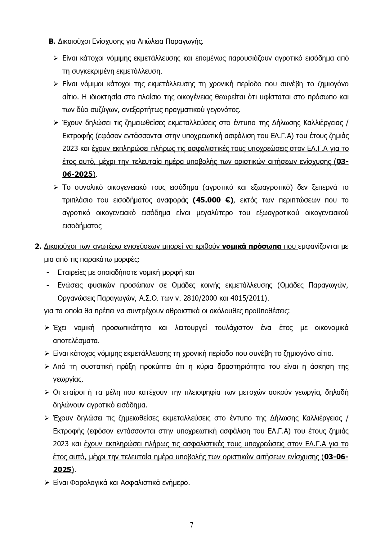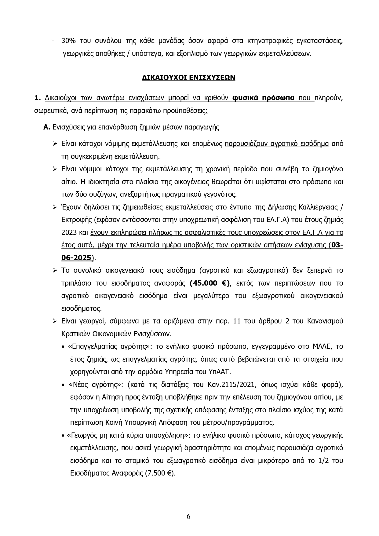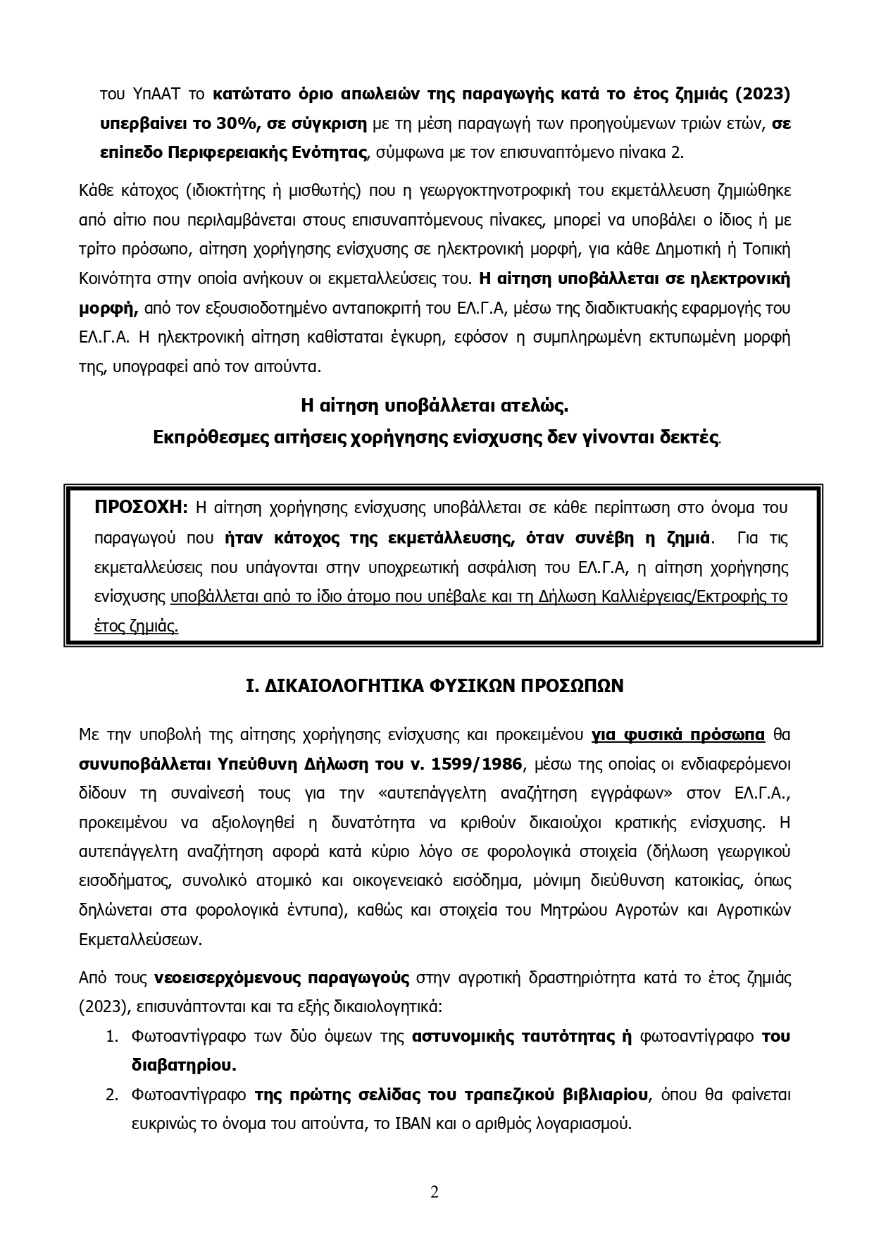 Αφορά την Δ.Κ. Διονυσίου για το ζημιογόνο αίτιο “Πλημμύρα”, στις 17/6/2023 & την Δ.Κ. Σημάντρων για το ζημιογόνο αίτιο “Ανεμοθύελλα”, στις 25/11/2023.