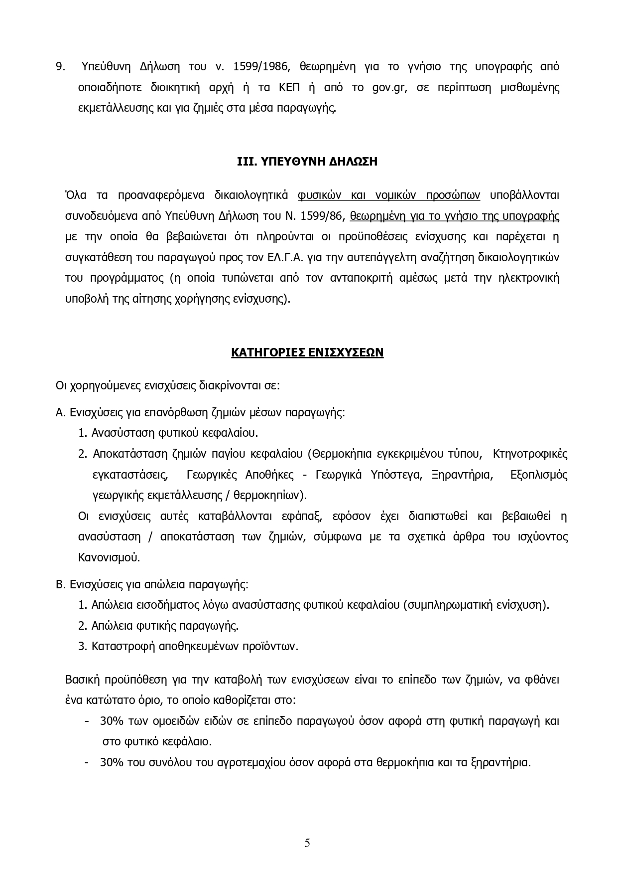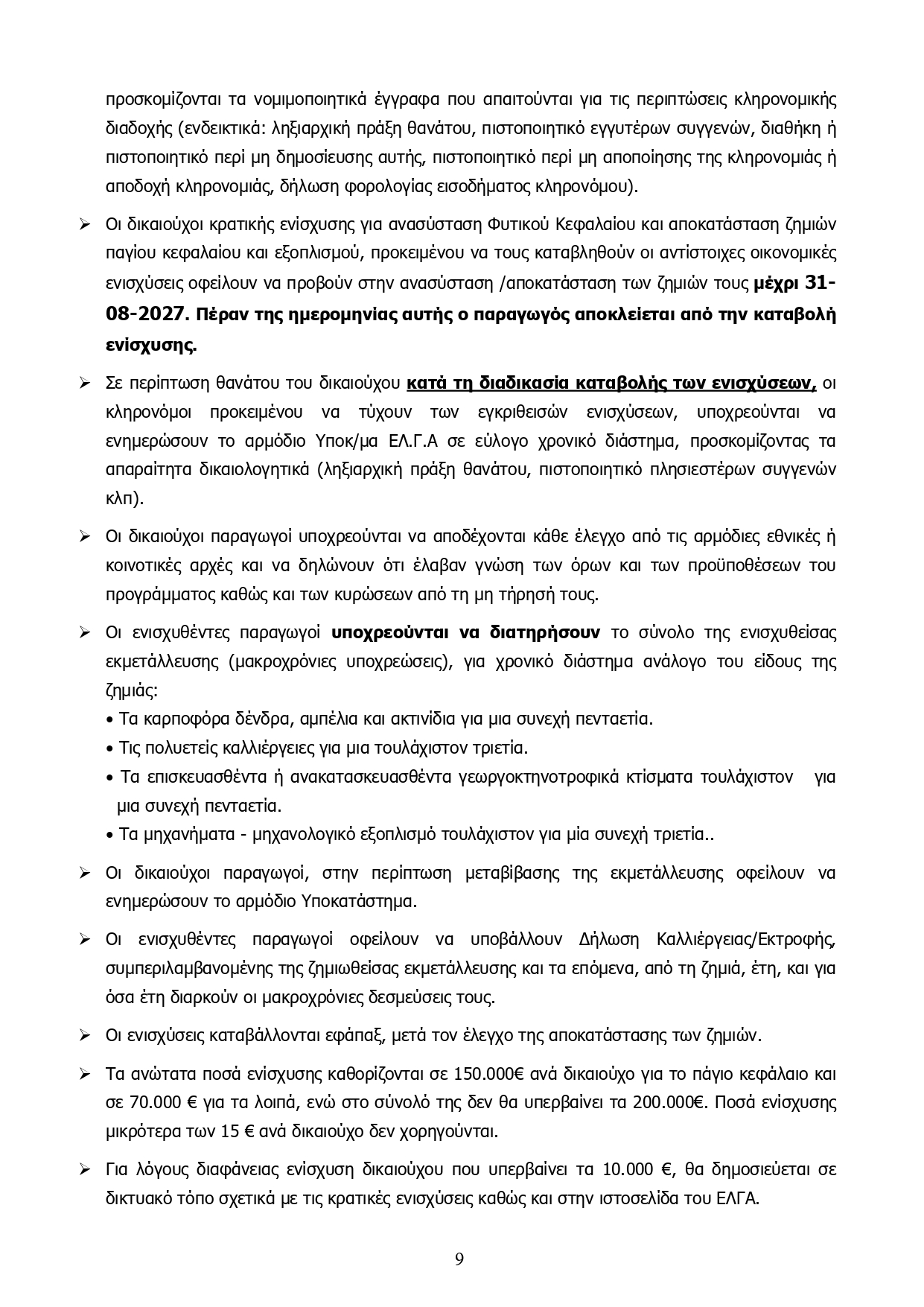 – για ζημιά που έχουν υποστεί στο φυτικό κεφάλαιο των γεωργικών τους εκμεταλλεύσεων για τις επιλέξιμες ζημιές του προγράμματος,