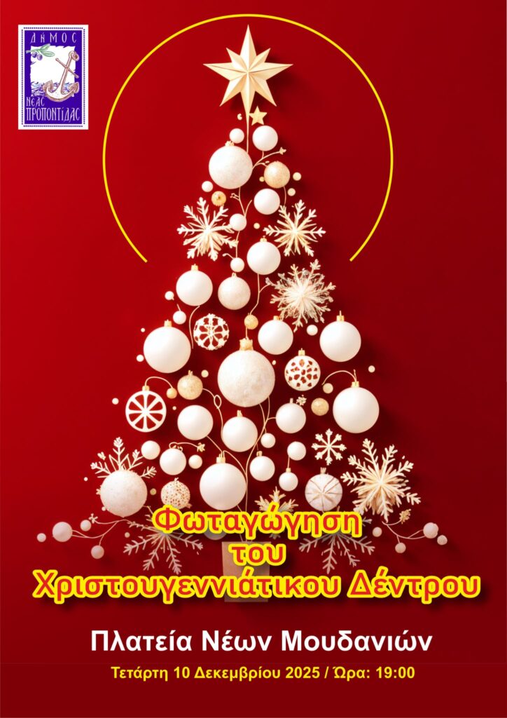 Σας ενημερώνουμε ότι η προγραμματισμένη εκδήλωση για τη φωταγώγηση του Χριστουγεννιάτικου Δέντρου στα Νέα Μουδανιά, η οποία επρόκειτο να πραγματοποιηθεί την Παρασκευή 5 Δεκεμβρίου, ΑΝΑΒΑΛΛΕΤΑΙ λόγω του Έκτακτου Δελτίου Επικίνδυνων Καιρικών Φαινομένων (Κόκκινη Προειδοποίηση) που βρίσκεται σε ισχύ και αναμένεται να επηρεάσει την περιοχή.