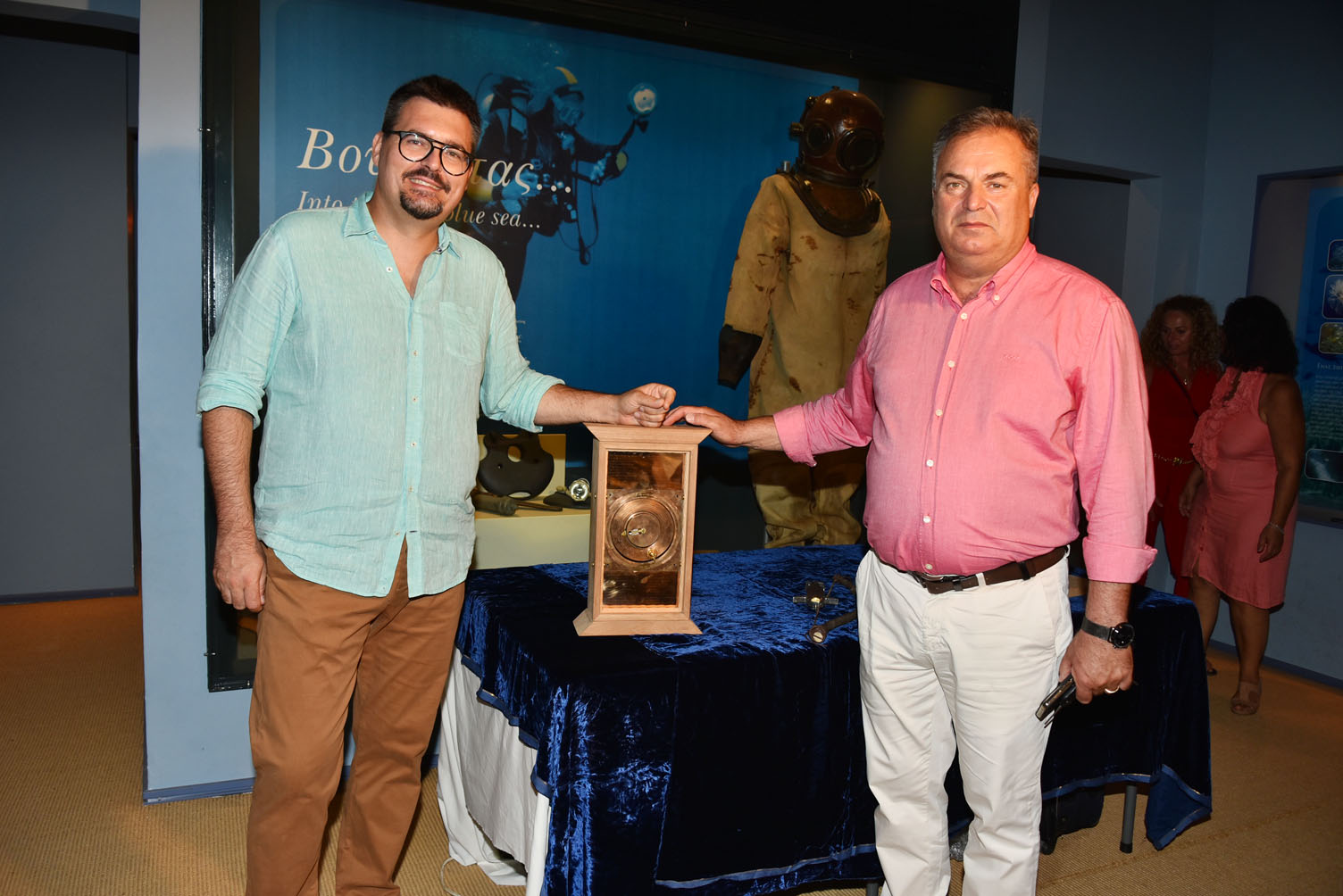 Ο κ. Αριστείδης Βούλγαρης, “λύτης“ του αινίγματος του θραύσματος «D» του Μηχανισμού των Αντικυθήρων κ. Αριστείδης Βούλγαρης επικεφαλής της ομάδας “The Functional Reconstruction of Antikythera Mechanism-The FRAMe Project” παρουσίασε στην ομιλία του το θέμα: «Κατασκευάζοντας τον Μηχανισμό των Αντικυθήρων με Αρχαία Ελληνικά Εργαλεία και η χρήση του για την πρόβλεψη των εκλείψεων». Με το πέρας της ομιλίας, ο κ. Αριστείδης Βούλγαρης συνομίλησε με το κοινό και απάντησε σε ερωτήσεις στην αίθουσα Βυθού. Επίσης, οι επισκέπτες είχαν την ευκαιρία να δουν από κοντά τη λειτουργία του Μηχανισμού των Αντικυθήρων και να χειριστούν τα αρχαία ελληνικά εργαλεία, που έχουν κατασκευάσει ο κ. Αριστείδης Βούλγαρης με την ομάδα του.