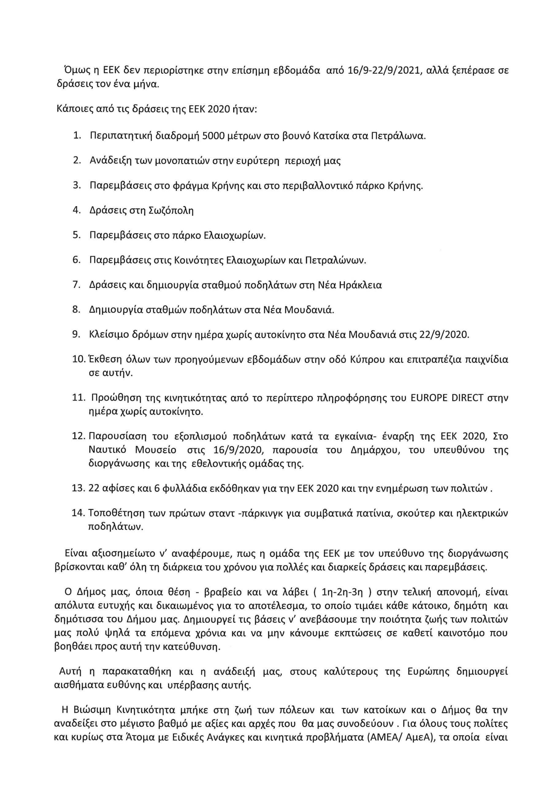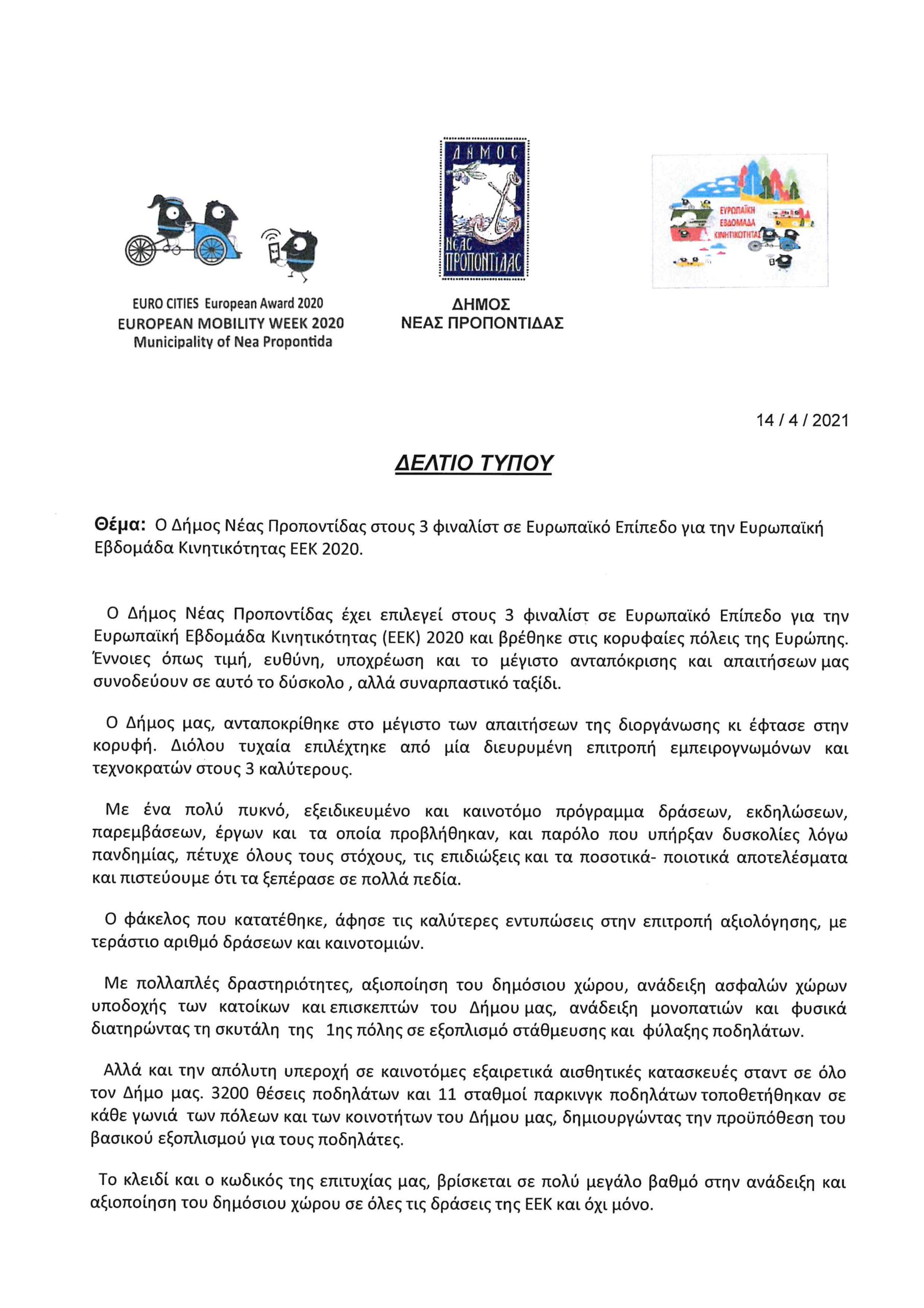 Ευρωπαϊκή Εβδομάδα Κινητικότητας: Τρίτος στην Ευρώπη ο Δήμος Νέας Προποντίδας στην κατηγορία των πόλεων μέχρι 100.000 πληθυσμό