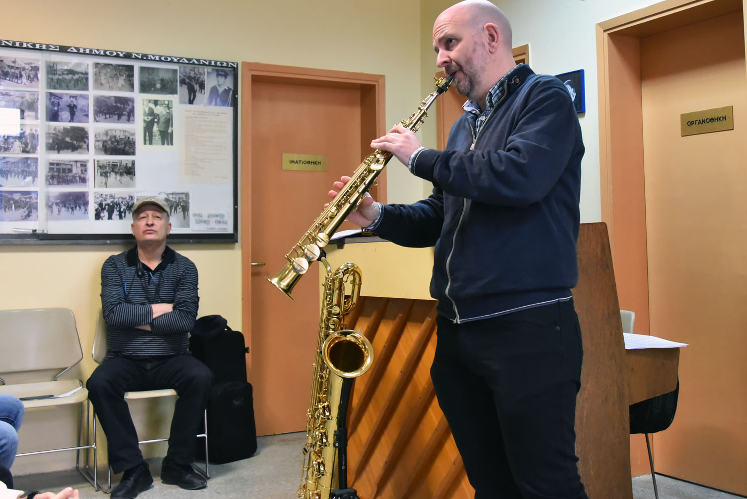 Δωρεάν σεμινάριο σαξοφώνου “από την κλασική στην jazz” πραγματοποιήθηκε την Κυριακή 12-3-2023 στην αίθουσα της Φιλαρμονικής στα Ν. Μουδανιά, από τους Ξενοφώντα Αβράμογλου και Δημήτρη Τσέλιο παρουσία και του Μαέστρου της δημοτικής Big band of Moudania, Γιώργου Σαμαρά.