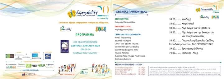 Ο μη κερδοσκοπικός Οργανισμός ECOCITY για την 20η επετειακή χρονιά επιμελείται της διοργάνωσης των εκστρατειών ECOMOBILITΥ και των παράλληλων δράσεων FREEMOBILITY και ECO2MOBILITY που έχουν σκοπό την ευαισθητοποίηση εφήβων και την αφύπνιση των πολιτών για την οικολογική μετακίνηση, την ελεύθερη προσβασιμότητα στις πόλεις και την προώθηση των δικαιωμάτων των πολιτών.