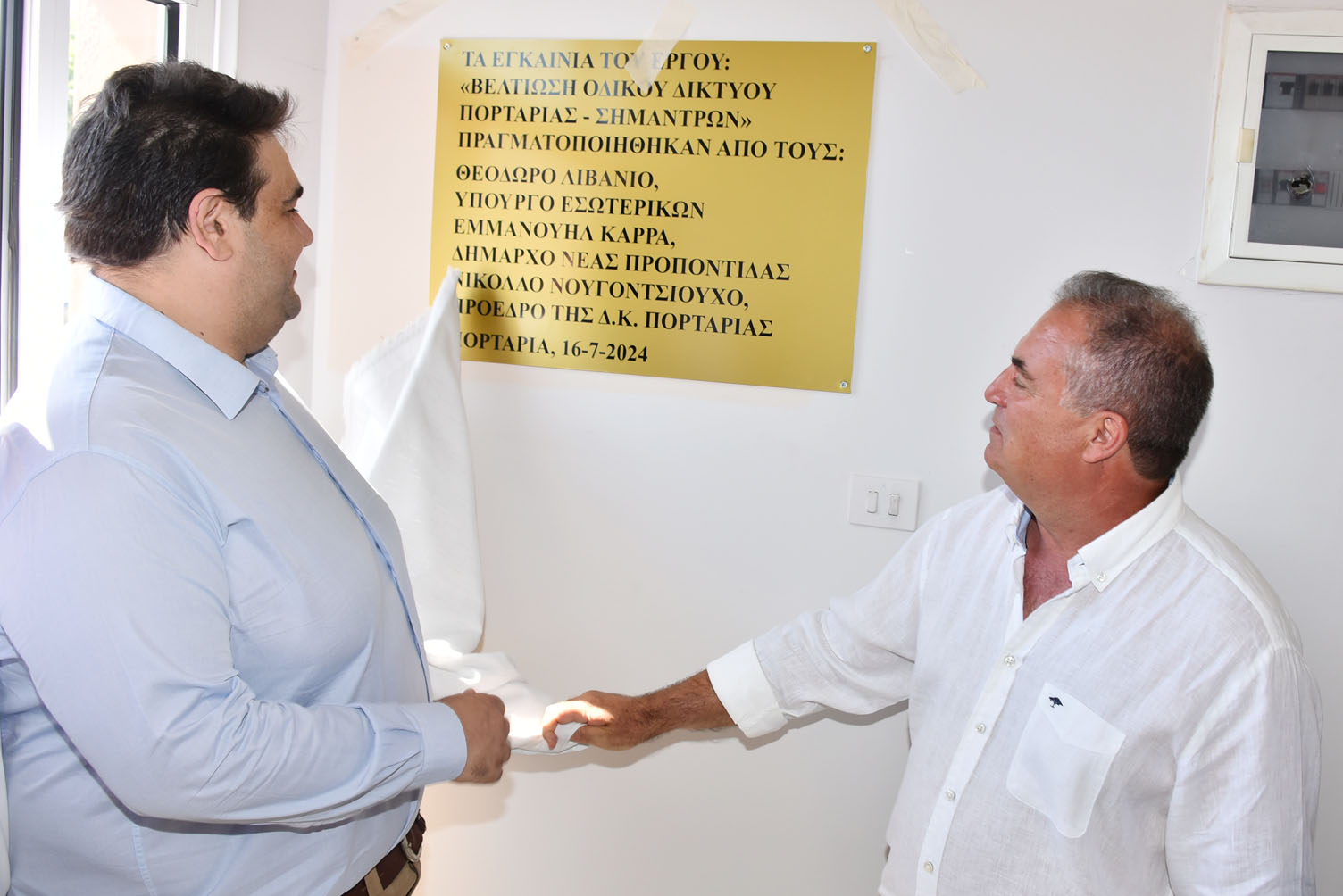 επισκέφθηκε το Δήμο μας και τέλεσε τα εγκαίνια των έργων αποκατάστασης του οδικού δικτύου Σημάντρων- Πορταριάς (έως τον κόμβο με την Ε.Ο. Ν. Μουδανιών – Ν. Τρίγλιας), προϋπολογισμού μελέτης 4.700.000,00€, που υλοποιήθηκαν με χρηματοδότηση του Ταμείου Ανάκαμψης.