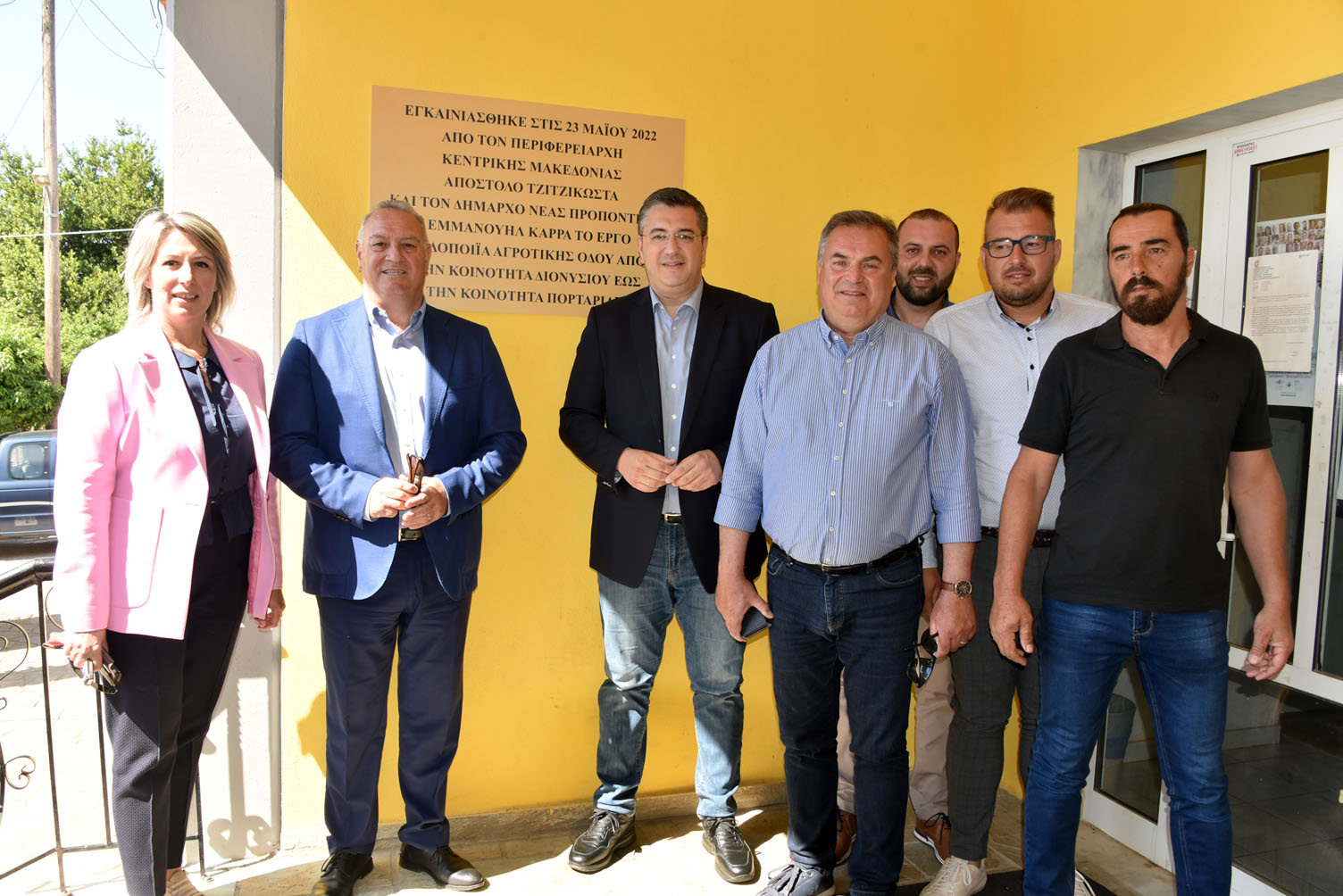 Τα εγκαίνια του έργου “Αγροτική Οδοποιία Διονυσίου-Πορταριάς” πραγματοποιήθηκαν σήμερα παρουσία του Περιφερειάρχη Κεντρικής Μακεδονίας Απ. Τζιτζικώστα, του Αντιπεριφερειάρχη Χαλκιδικής Ι. Γιώργου, της Περιφερειακής Συμβούλου Κατερίνας Ζωγράφου και αιρετών του Δήμου μας.