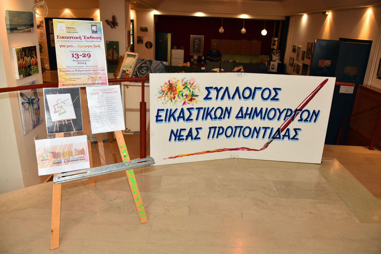 Η Εικαστική Έκθεση του Συλλόγου Εικαστικών Δημιουργών Νέας Προποντίδας, ‘’για μια . . . όμορφη ζωή‘’, η οποία λειτουργεί στο Φουαγιέ του Δημοτικού Θεάτρου Ν. Μουδανιών, καθημερινά και μέχρι τις 29 Φεβρουαρίου 2024 (18:00-21:00). έχει ως σκοπό τη στήριξη του Συλλόγου για τα άτομα με αναπηρία Ν. Προποντίδας “Όμορφη Ζωή”.