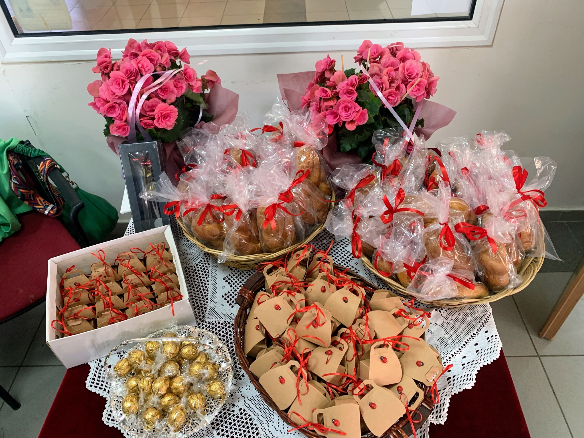 Κατά τη διάρκεια της εκδήλωσης, μοιράστηκαν λουλούδια και κεράσματα σε όλες τις μητέρες.