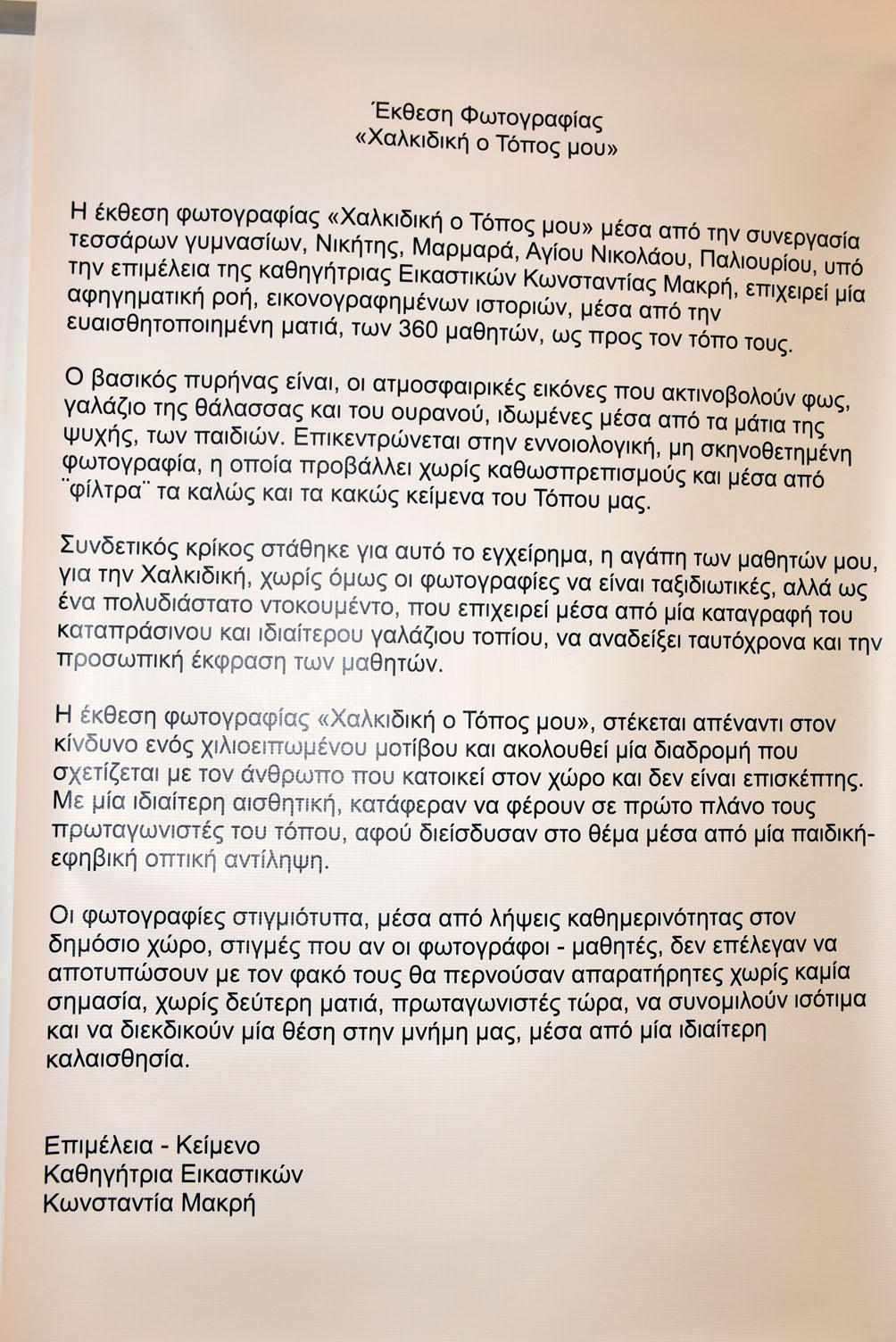 Έκθεση φωτογραφίας ‘’Χαλκιδική, ο Τόπος μου”: Επίσκεψη των μαθητών του Γυμνασίου Παλιουρίου.