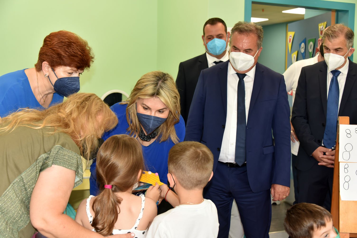 Στη συνέχεια, πραγματοποιήθηκε επίσκεψη στο 3ο Νηπιαγωγείο Ν. Μουδανιών, όπου συνομίλησε με παιδιά και εκπαιδευτικούς.