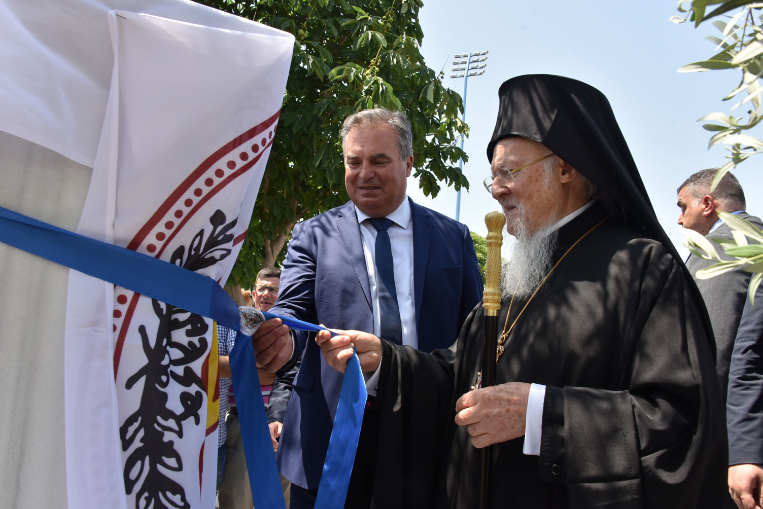 Αμέσως μετά στην πλατεία έμπροσθεν του Δημοτικού θεάτρου που φέρει το όνομα “Πλατεία Πατριάρχου κ.κ. Βαρθολομαίου”, έγινε η αποκάλυψη της στήλης με την ονομασία της πλατείας. Εκείνη την ώρα απελευθερώθηκαν περιστέρια, ενώ ακολούθησε φύτευση ελιάς από τον Παναγιώτατο.