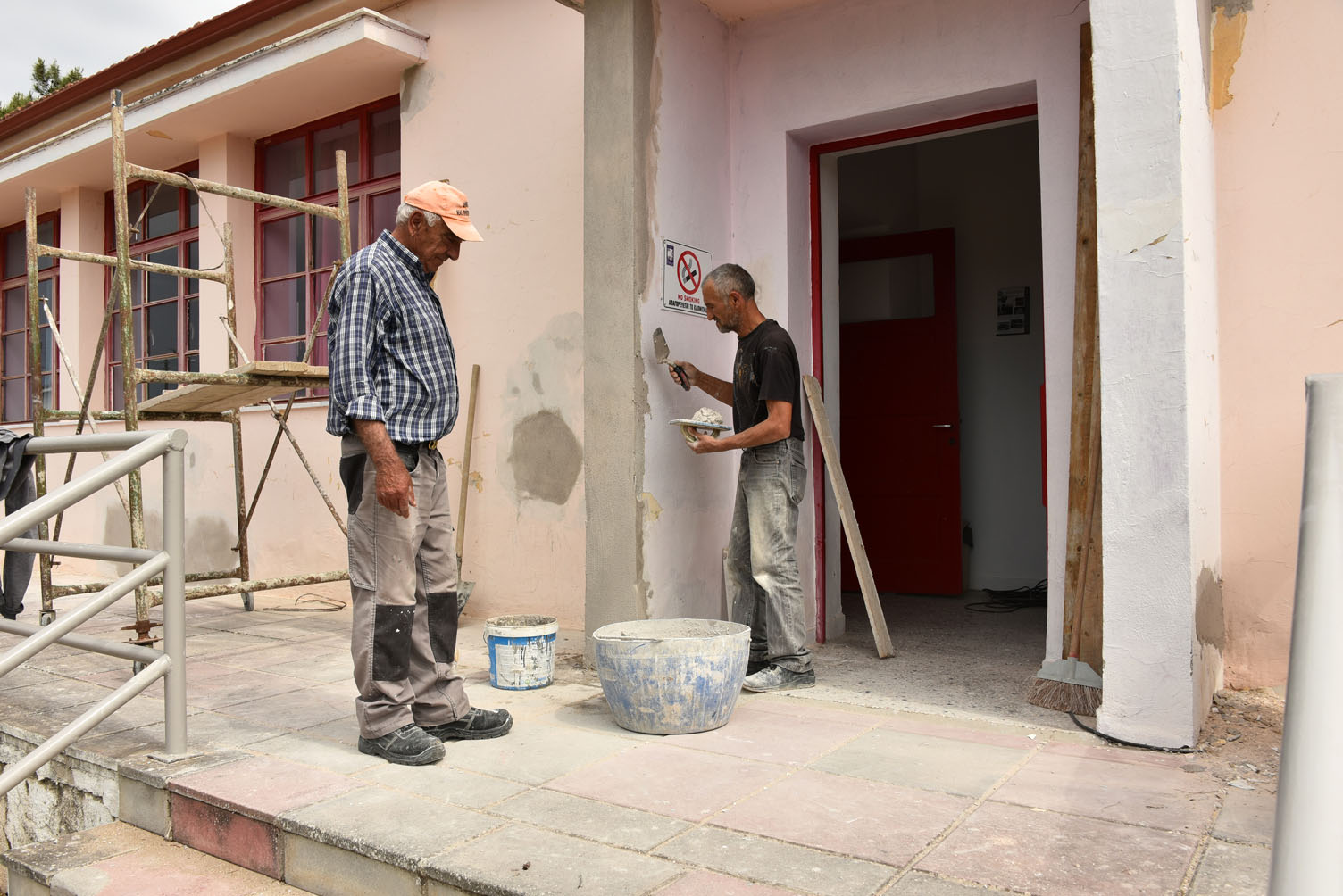 Συγκεκριμένα, στο εσωτερικό και εξωτερικό του κτιρίου πραγματοποιούνται οι εξής εργασίες: