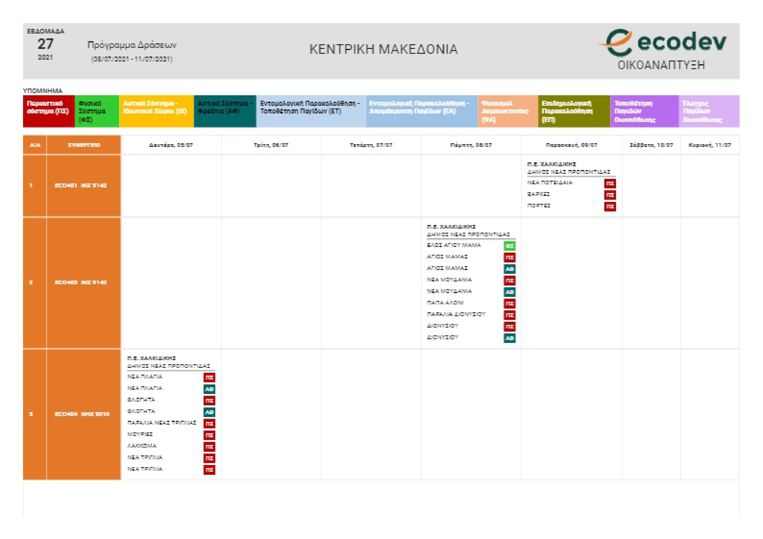 Δείτε παρακάτω το αναλυτικό Πρόγραμμα ψεκασμών που ισχύει έως και την Παρασκευή 9-7-2021.