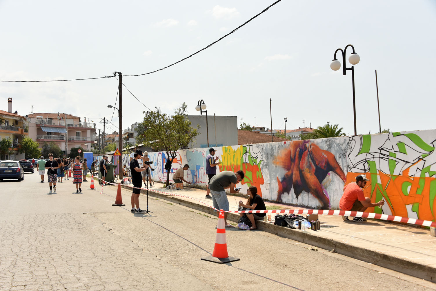 Πενήντα ταλαντούχοι street-artists πήραν τα σπρέι τους και επιστρατεύοντας όλη τους την τέχνη, δημιούργησαν ένα μεγάλο καμβά στους εξωτερικούς τοίχους του Δημοτικού Σταδίου Νέων Μουδανιών.