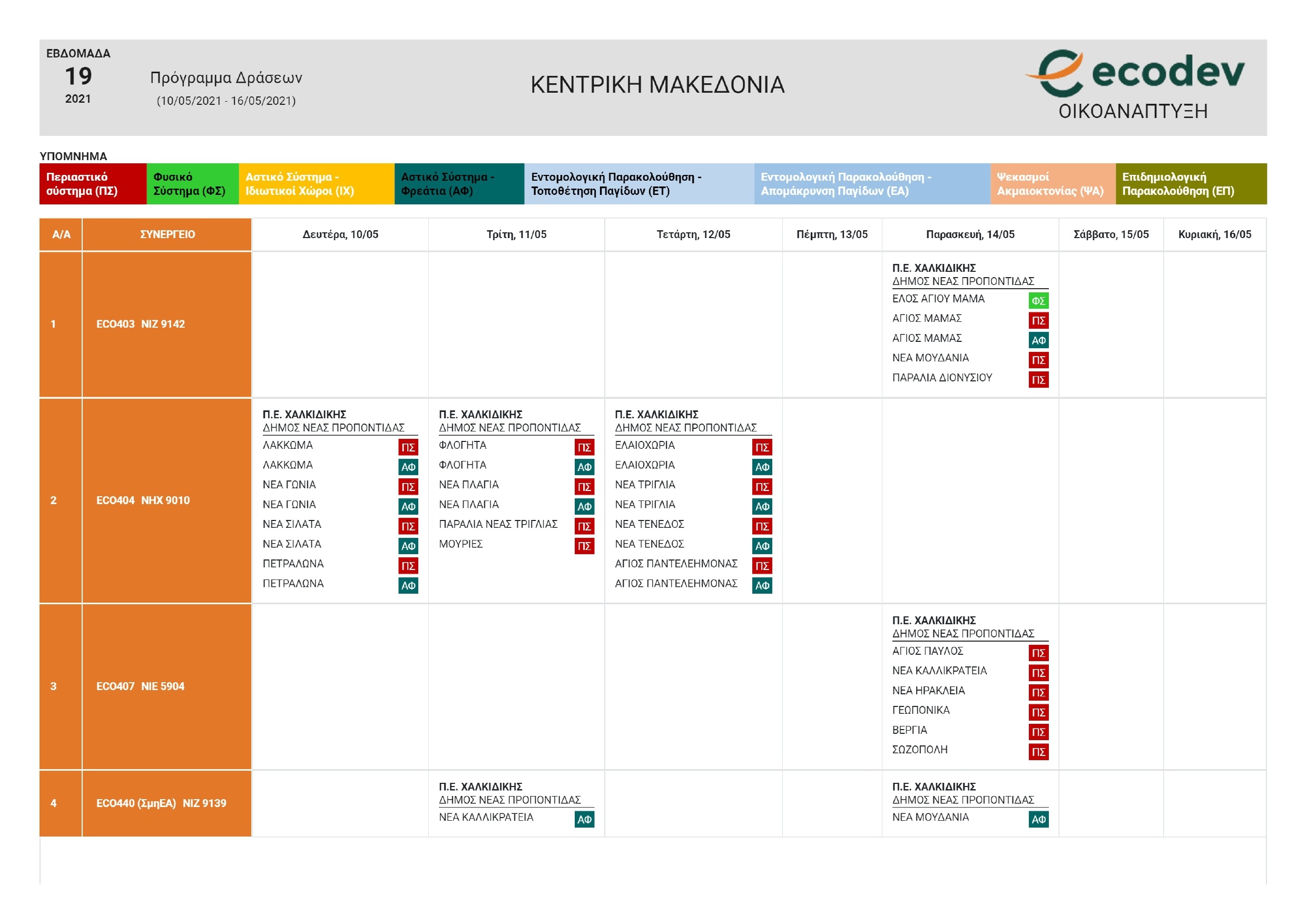 Δείτε παρακάτω το αναλυτικό Πρόγραμμα ψεκασμών που ισχύει έως και την Παρασκευή 14-5-2021.