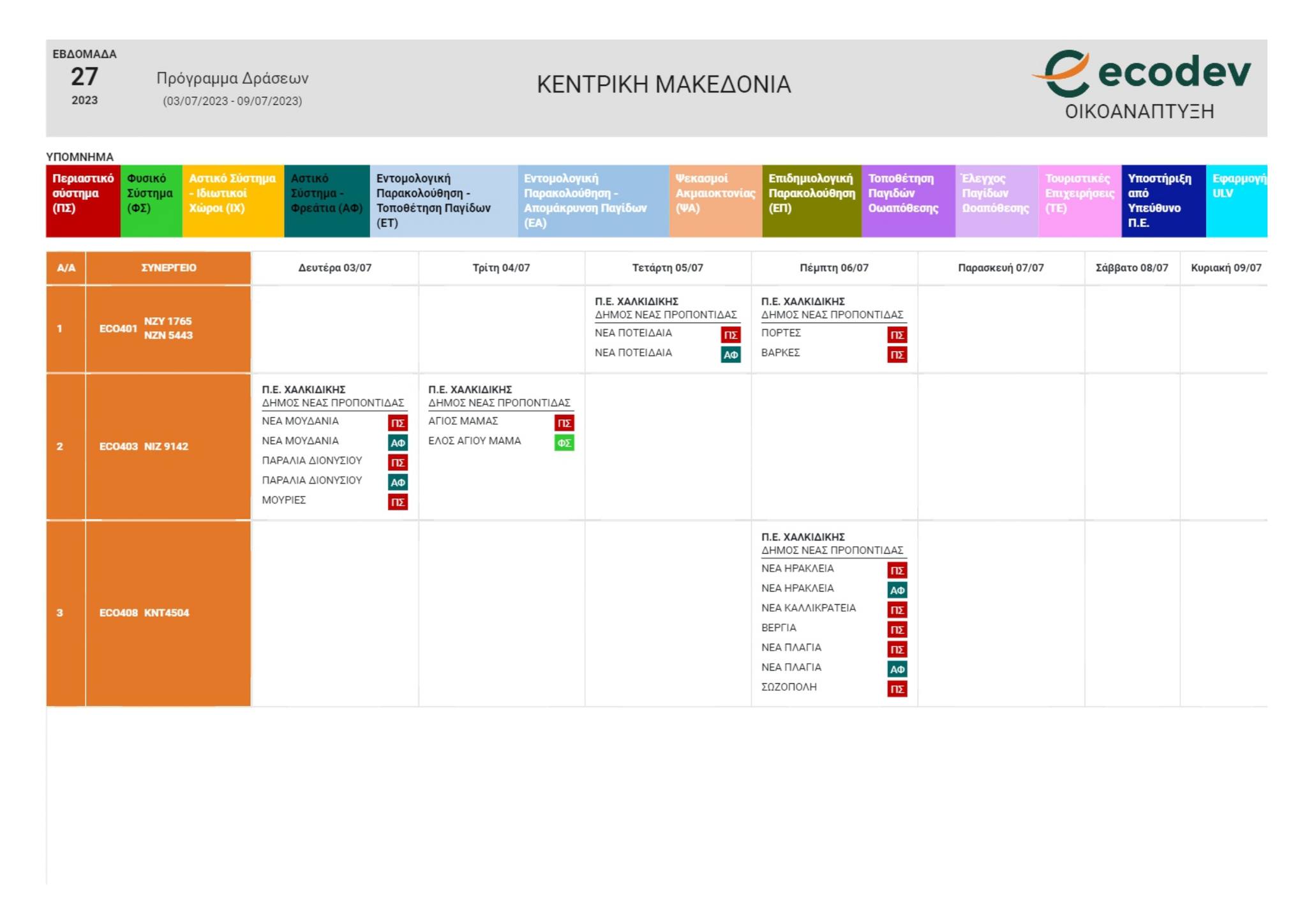 ➡Δείτε παρακάτω το αναλυτικό πρόγραμμα ψεκασμών που ισχύει από την Δευτέρα 3/7/2023 έως και την Παρασκευή 7/7/2023.