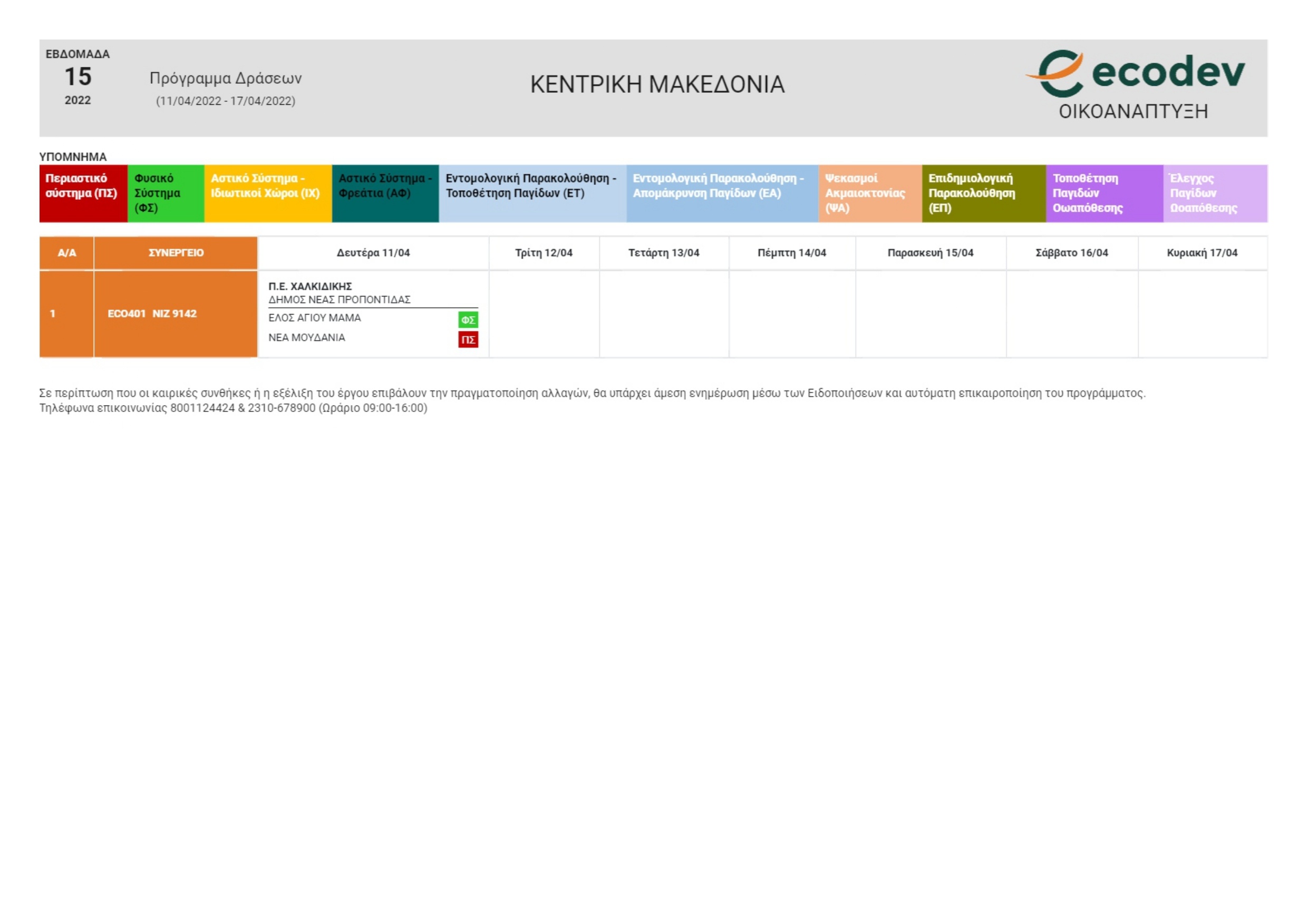Δείτε παρακάτω το Πρόγραμμα ψεκασμών στο Δήμο Νέας Προποντίδας, που ισχύει από την Δευτέρα 11/4/2022