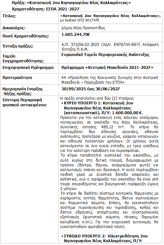 Κατασκευή 2ου Νηπιαγωγείου Νέας Καλλικράτειας