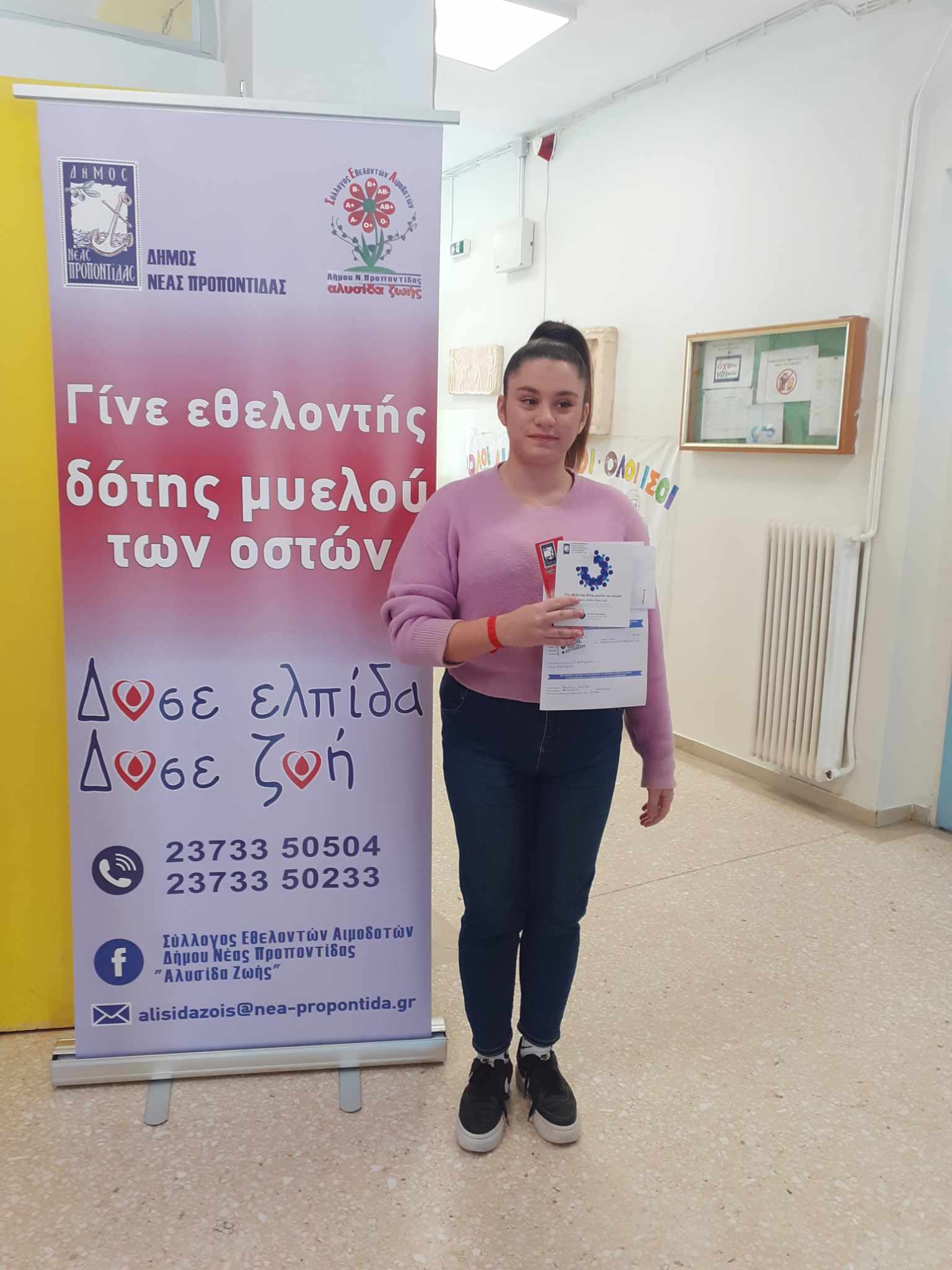 Για ενημέρωση και εγγραφή εθελοντών δοτών μυελού των οστών επικοινωνείτε με τα 2373350233 ή 50504 ή στέλνετε μήνυμα στο alisidazois@nea-propontida.gr.