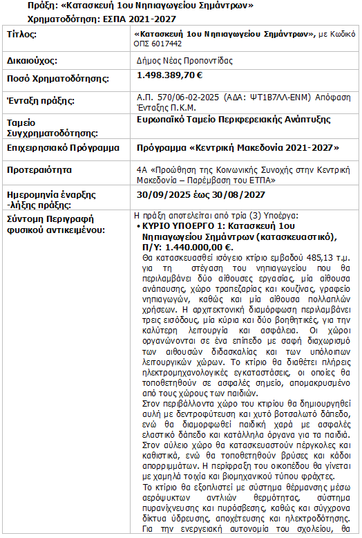 Κατασκευή 1ου Νηπιαγωγείου Σημάντρων