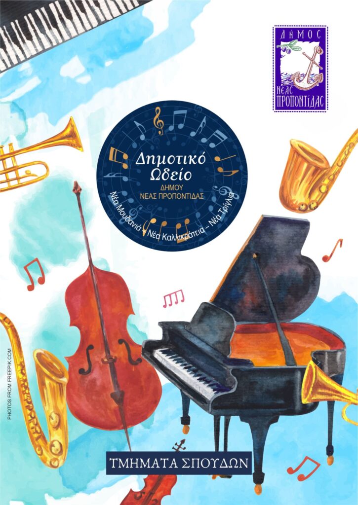 Ξεκίνησαν , Τρίτη 9 Σεπτεμβρίου, οι εγγραφές στο Δημοτικό Ωδείο Ν. Προποντίδας στα Ν. Μουδανιά (Γ. Παπανδρέου 12, καθημερινά 10:00-14:00). Τα μαθήματα των οργάνων είναι ατομικά, γίνονται μία φορά την εβδομάδα και υποστηρίζονται από εβδομαδιαίο ομαδικό μάθημα θεωρίας και σολφέζ (Δυνατότητα ηλεκτρονικής εγγραφής μετά από επικοινωνία με το ωδείο).