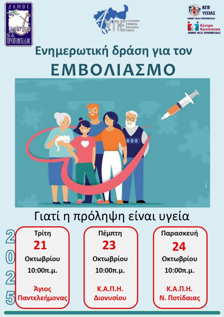Ο Δήμος Νέας Προποντίδας, σε συνεργασία με την 4η ΥΠΕ/ Κέντρο Υγείας Ν. Μουδανιών και το ΚΕΠ Υγείας, διοργανώνει ενημερωτικές παρουσιάσεις για τον εμβολιασμό σε τοπικές κοινότητες του Δήμου.