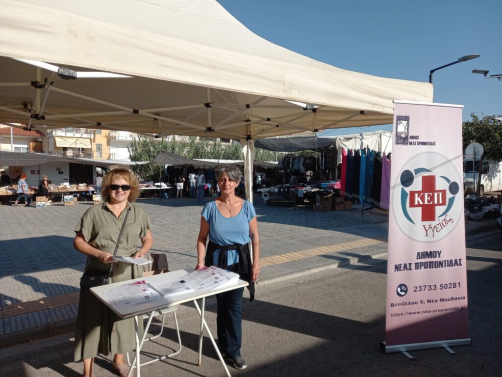 Ο Δήμος Νέας Προποντίδας, σε συνεργασία με το Κέντρο Υγείας Ν. Μουδανιών και στο πλαίσιο του εθνικού προγράμματος του Υπουργείου Υγείας «Προλαμβάνω τα Καρδιαγγειακά Νοσήματα», πραγματοποίησε ενημερωτικές δράσεις στις λαϊκές αγορές των Ν. Μουδανιών, των Σημάντρων και της N.Τρίγλιας.