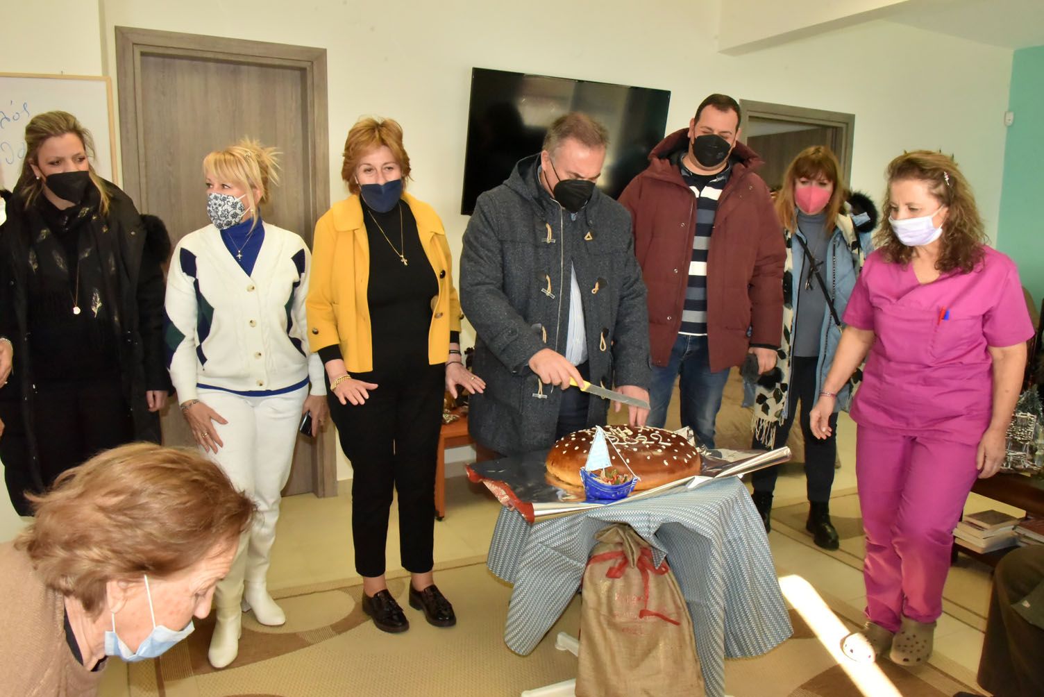Την πρωτοχρονιάτικη βασιλόπιτα έκοψε ο Δήμαρχος Μ. Καρράς στο Κέντρο Ημερήσιας Φροντίδας Ηλικιωμένων στη Ν. Καλλικράτεια, παρουσία αιρετών και ηλικιωμένων που απολαμβάνουν τις υπηρεσίες της δομής.