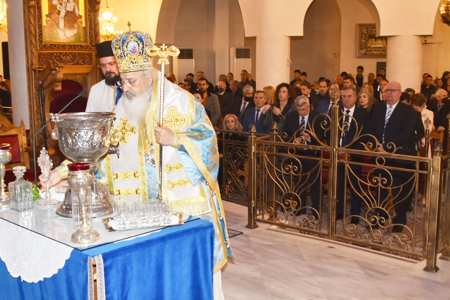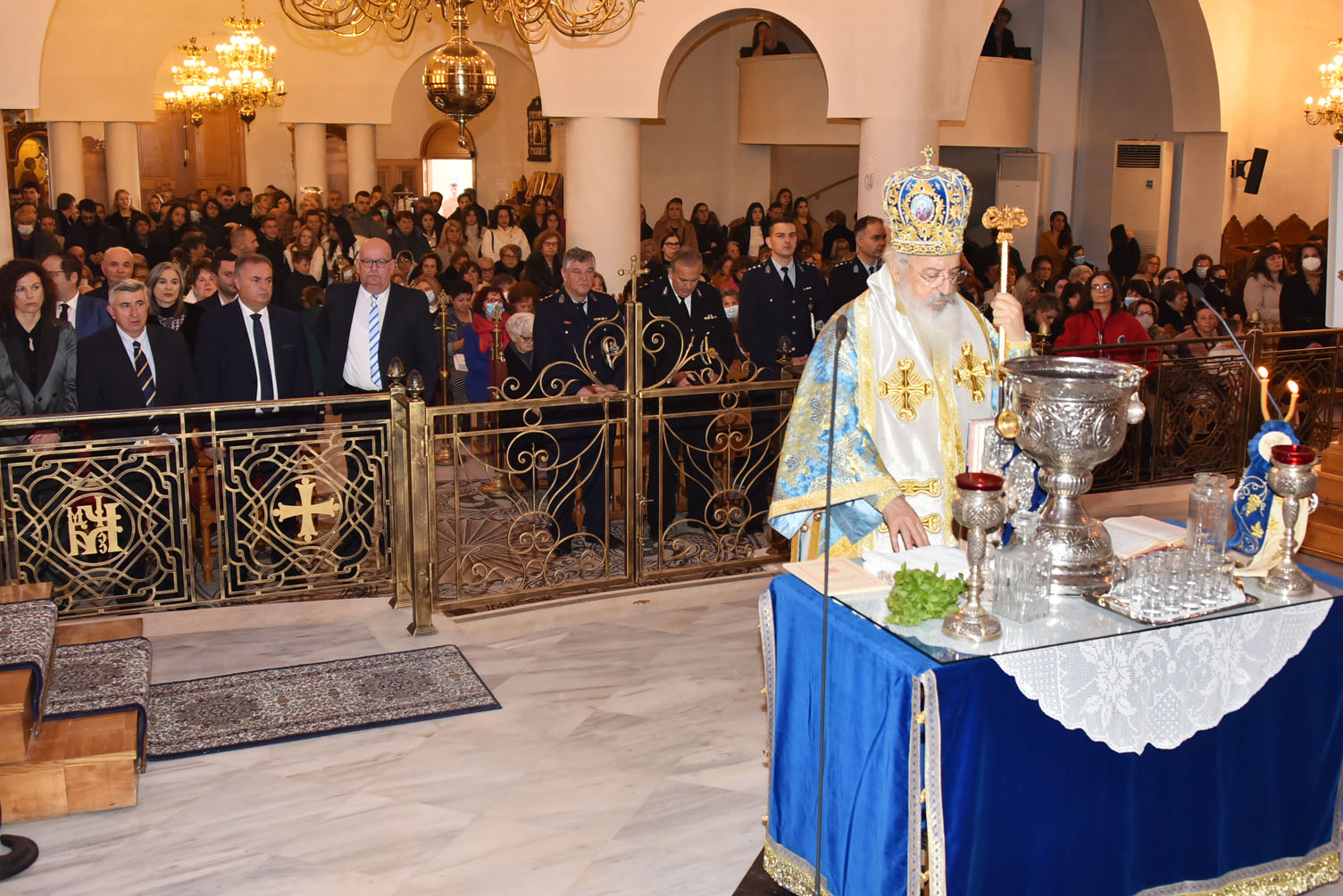 Με τη δέουσα λαμπρότητα και επισημότητα γιορτάσθηκαν τα Άγια Θεοφάνεια στην έδρα του Δήμου Ν. Προποντίδας, στα Ν. Μουδανιά. Τον πρωί τελέσθηκε ο Όρθρος, η Θεία λειτουργία και ο Μέγας Αγιασμός στον Ιερό Ναό Αγίου Γεωργίου χοροστατούντος του Σεβασμιωτάτου Μητροπολίτου Κασσανδρείας κ.κ. Νικοδήμου, παρουσία του Δημάρχου Ν. Προποντίδας κ. Μ. Καρρά, Δημοτικών Συμβούλων, Συμβούλων της Δημοτικής Κοινότητας Ν. Μουδανιών, Εκπροσώπων των σωμάτων ασφαλείας και πλήθους κόσμου.
