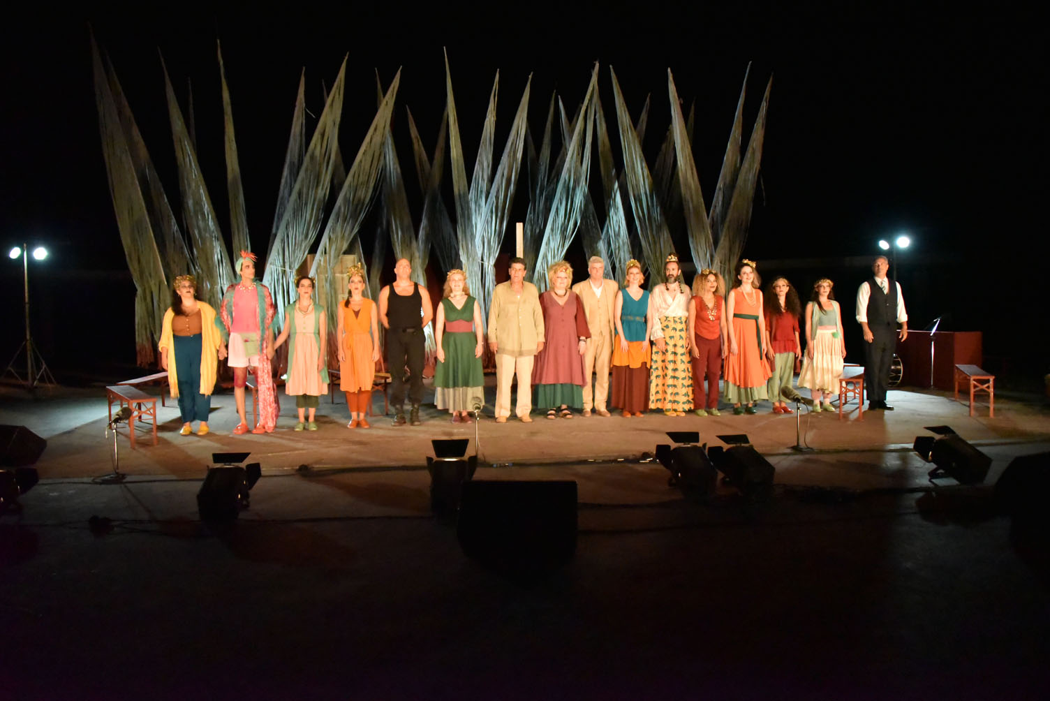 Η θεατρική παράσταση “Θεσμοφοριάζουσες” του Αριστοφάνη παρουσιάστηκε το Σάββατο 16/7, στο αμφιθέατρο Ν. Μουδανιών σε σκηνοθεσία Γιάννη Μπέζου.