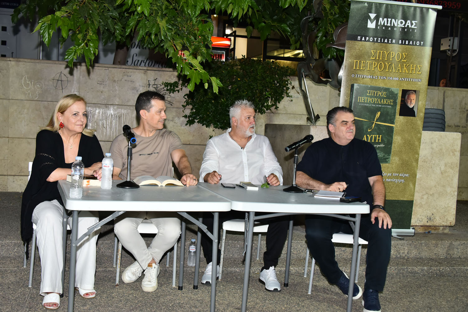 Στο έργο του συγγραφέα των τεράστιων τηλεοπτικών επιτυχιών «Σασμός» και «Ναυάγιο» και ιδιαίτερα στο νέο βιβλίο, αναφέρθηκαν η συγγραφέας Τζένη Πετροπούλου, ενώ αφηγητής της βραδιάς θα είναι ο μηχανικός Δημήτρης Σούρλας. Για τον ίδιο τον συγγραφέα μίλησε ο δημοσιογράφος Νίκος Πετρουλάκης. Τον συντονισμό της εκδήλωσης έκανε η δημοσιογράφος Κορίνα Ζολλά.