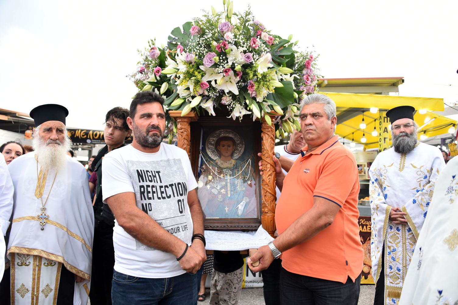 Στην περιφορά την εικόνας και στον Μέγα Πανηγυρικό Εσπερινό παρέστησαν ο Δήμαρχος Μ. Καρράς και μέλη του Δ.Σ, εκπρόσωποι της πολιτικής ηγεσίας, των σωμάτων ασφαλείας και πλήθος κόσμου. Ακολούθησαν πολιτιστικές εκδηλώσεις και λαϊκό γλέντι στην αίθουσα του ΕΠΟΚΑΜ.