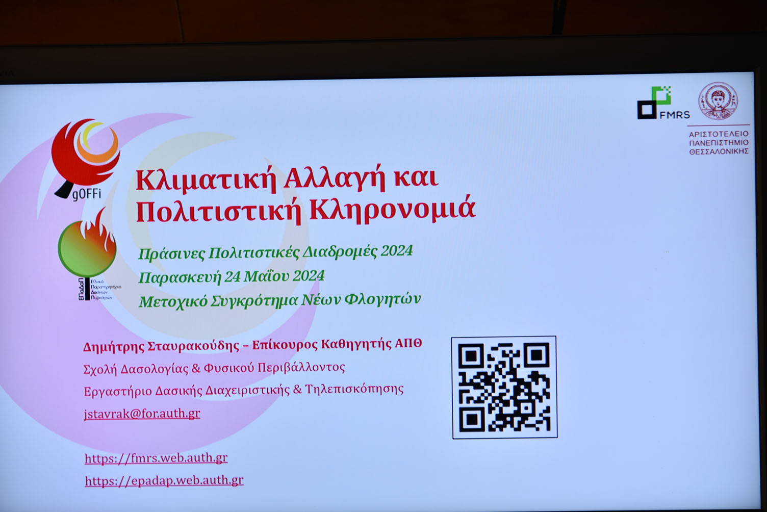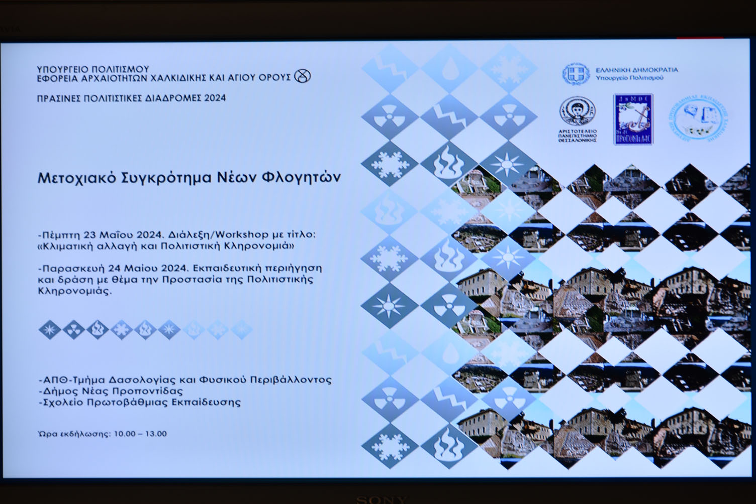 Συγκεκριμένα, την Πέμπτη 23 Μαΐου 2024, πραγματοποιήθηκε διάλεξη/ Workshop με τίτλο: «Κλιματική Αλλαγή και Πολιτιστική Κληρονομιά».