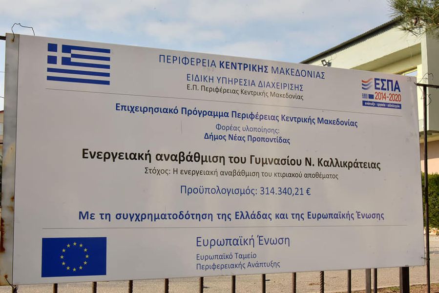 Ολοκληρώνεται η ενεργειακή αναβάθμιση του Γυμνασίου Ν. Καλλικράτειας. Το έργο είναι ενταγμένο στο “Επιχειρησιακό Πρόγραμμα Κεντρική Μακεδονία 2014-2020”, το οποίο συγχρηματοδοτείται από το Ευρωπαϊκό Ταμείο Περιφερειακής Ανάπτυξης (ΕΤΠΑ).