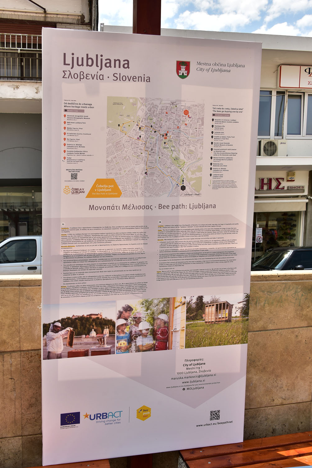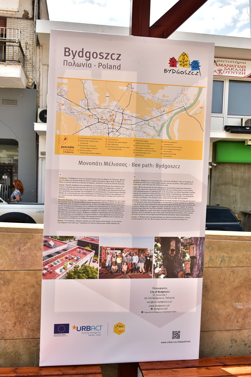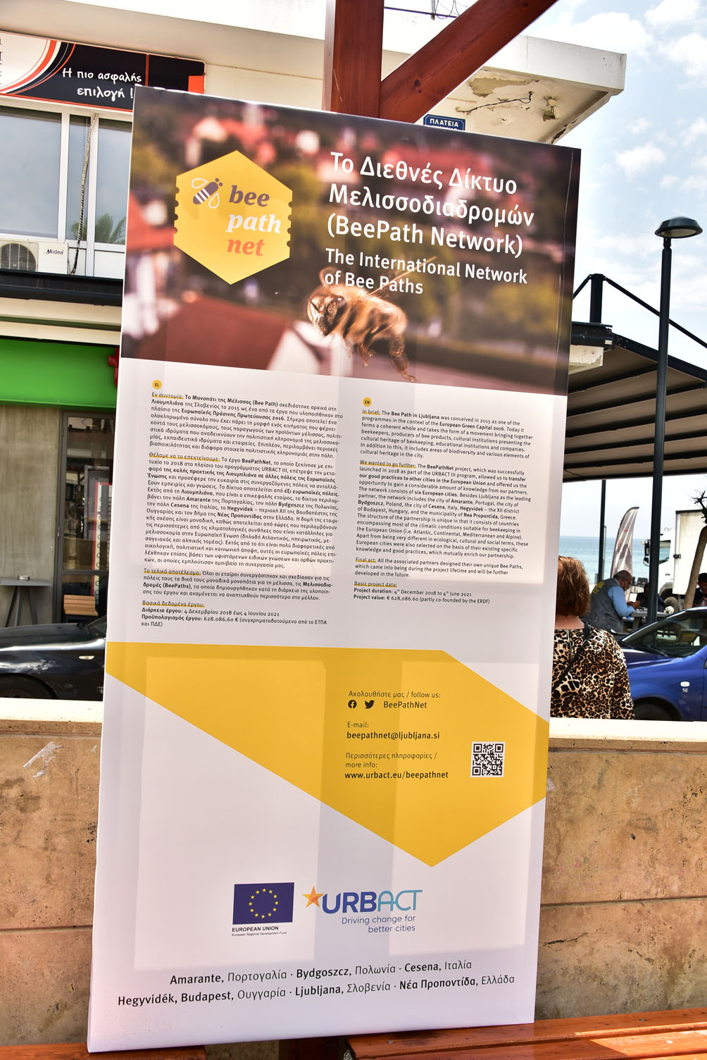 “Τα μονοπάτια της μέλισσας” τόσο του Δήμου μας, όσο και των άλλων πέντε Ευρωπαϊκών Πόλεων {(Λουμπλιάνα (Σλοβενία), Cesena (Ιταλία), Bydgoszcz (Πολωνία), Hegyvidék (Βουδαπέστη) και Amarante (Πορτογαλία)}, που συμμετέχουν στο πρόγραμμα BeePathNet παρουσιάζονται σε ειδικά πόστερ, που έχουν τοποθετηθεί στην Κεντρική Πλατεία των Ν. Μουδανιών.Θα παραμείνουν εκεί για περίπου έναν μήνα και στη συνέχεια θα μεταφερθούν, για να εκτεθούν σε άλλη κοινότητα του Δήμου μας.