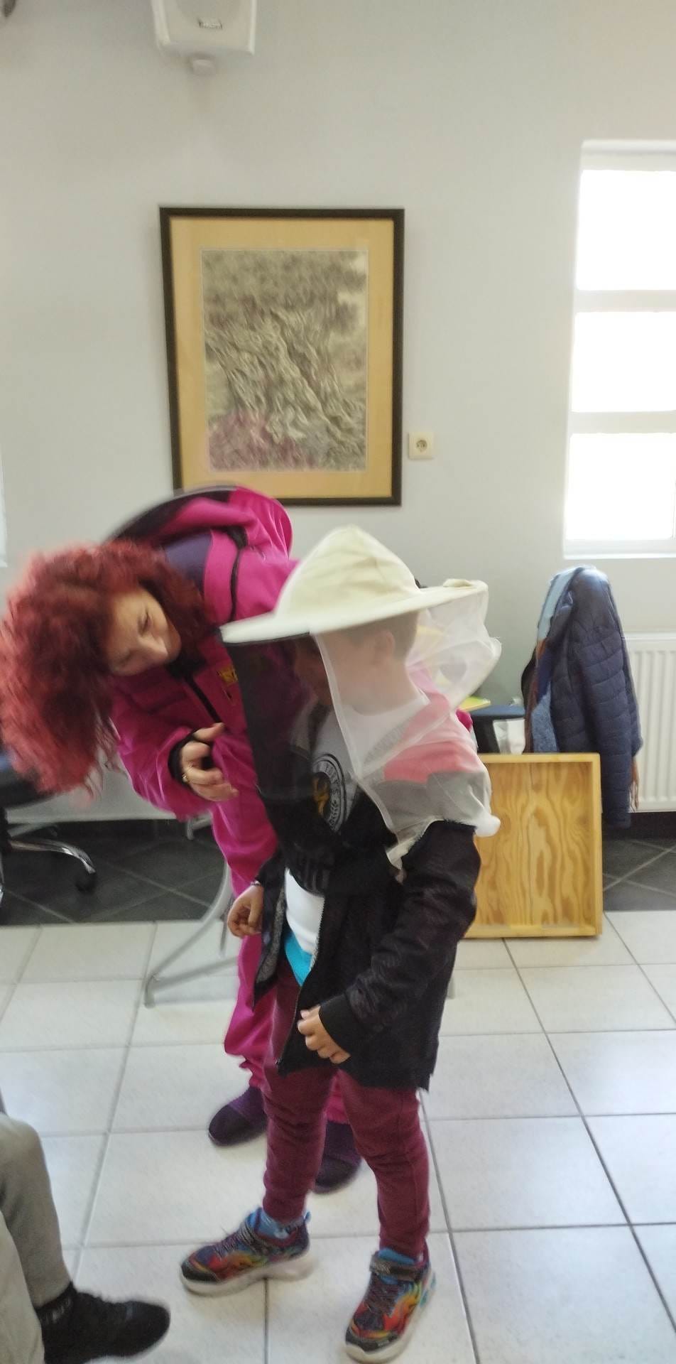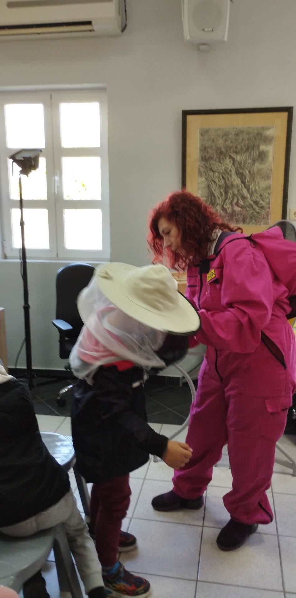Η κα Χατζήνα παρουσίασε στα παιδιά το βιβλίο της “Μελίφτερη η μέλισσα” και με τον μαγικό της τρόπο μεταμόρφωσε τα παιδιά σε μικρούς μελισσοκόμους.