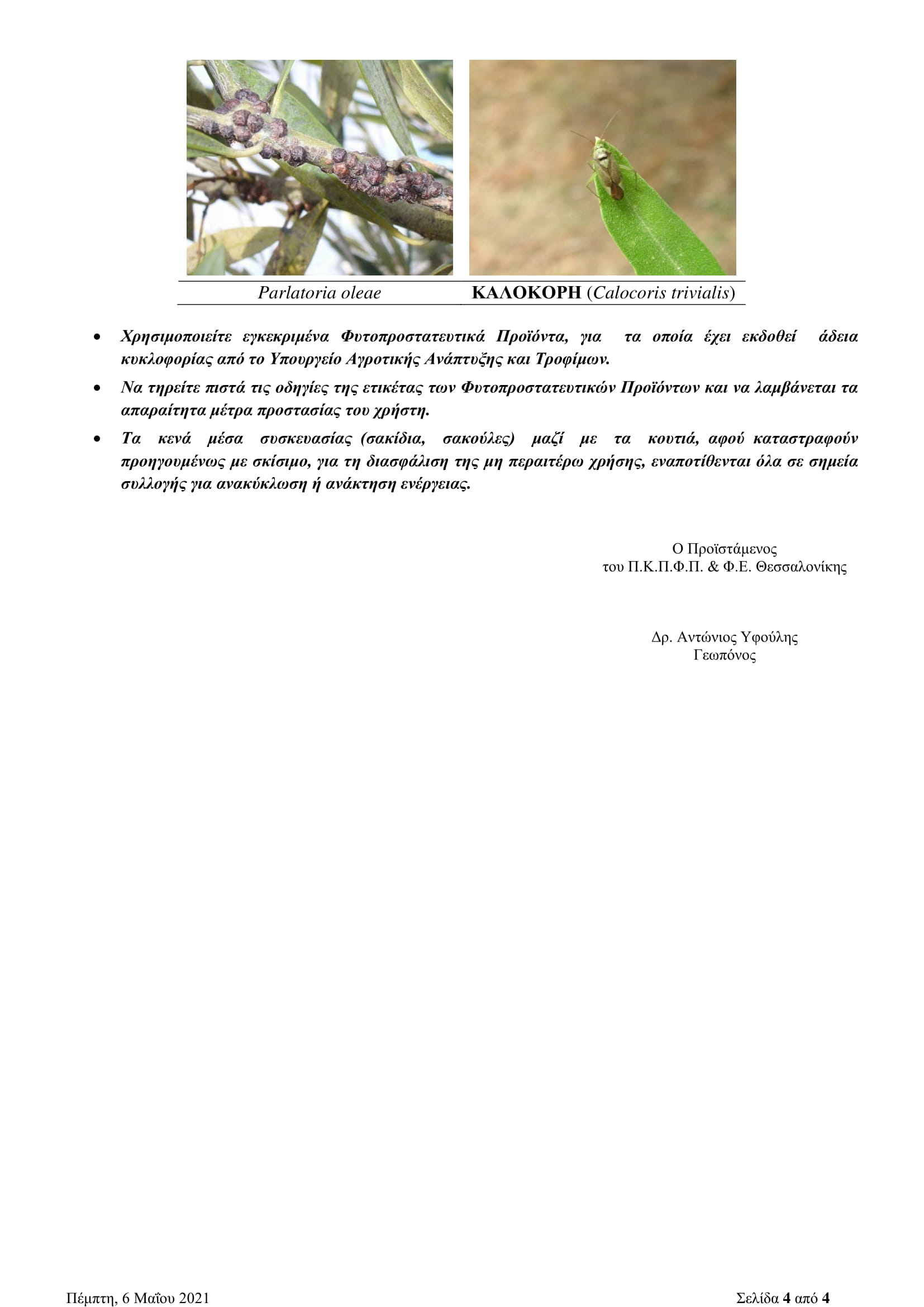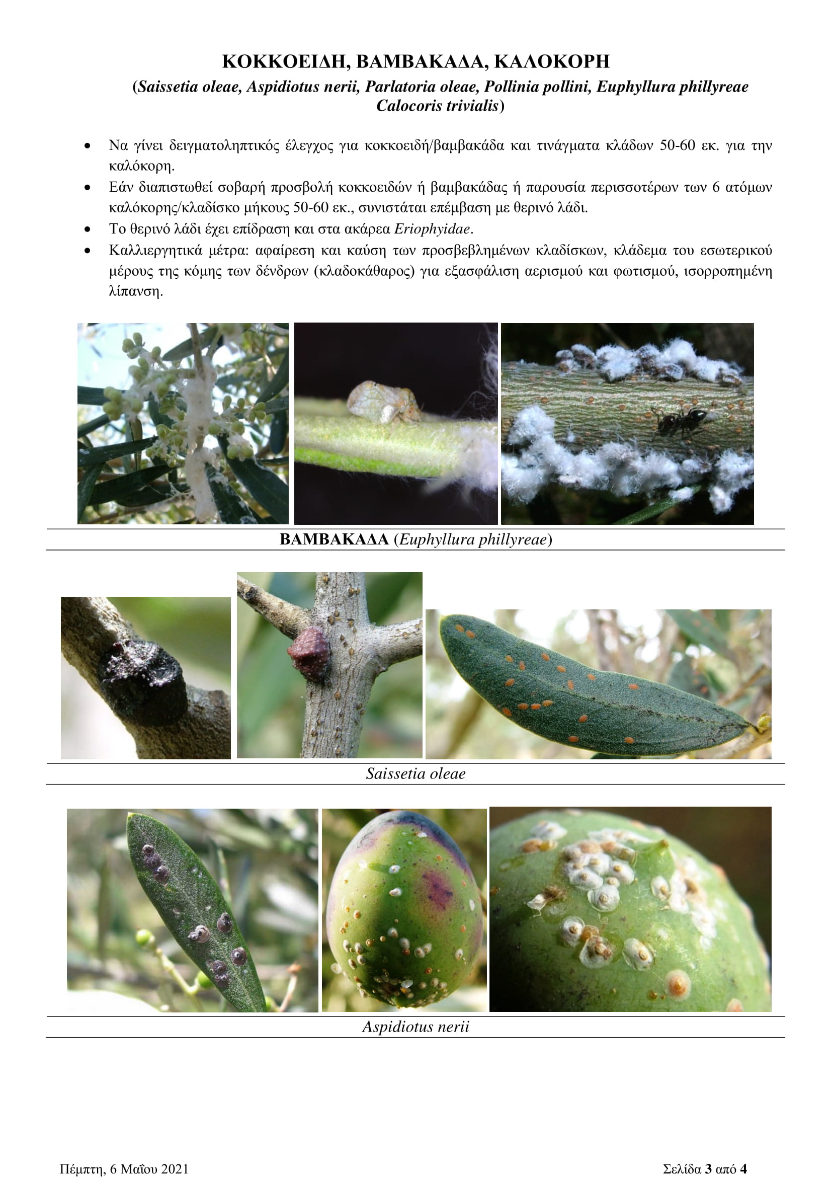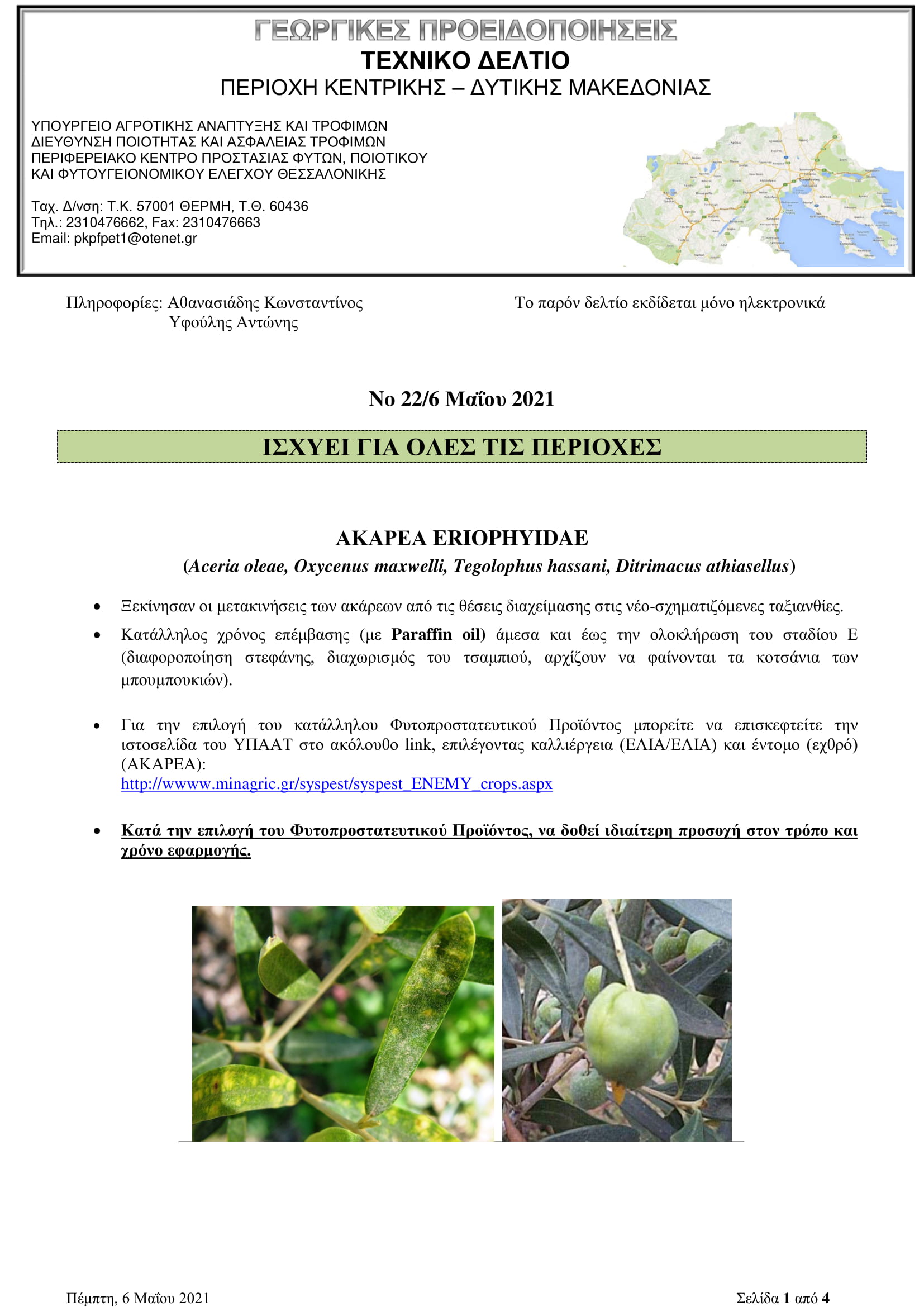 Παρακάτω, μπορείτε να δείτε το Τεχνικό Δελτίο Γεωργικών Προειδοποιήσεων, του Περιφερειακού Κέντρου Προστασίας Φυτών, Ποιοτικού & Φυτοϋγειονομικού Ελέγχου Θεσσαλονίκης, με σημαντικές προειδοποιήσεις σχετικά με: