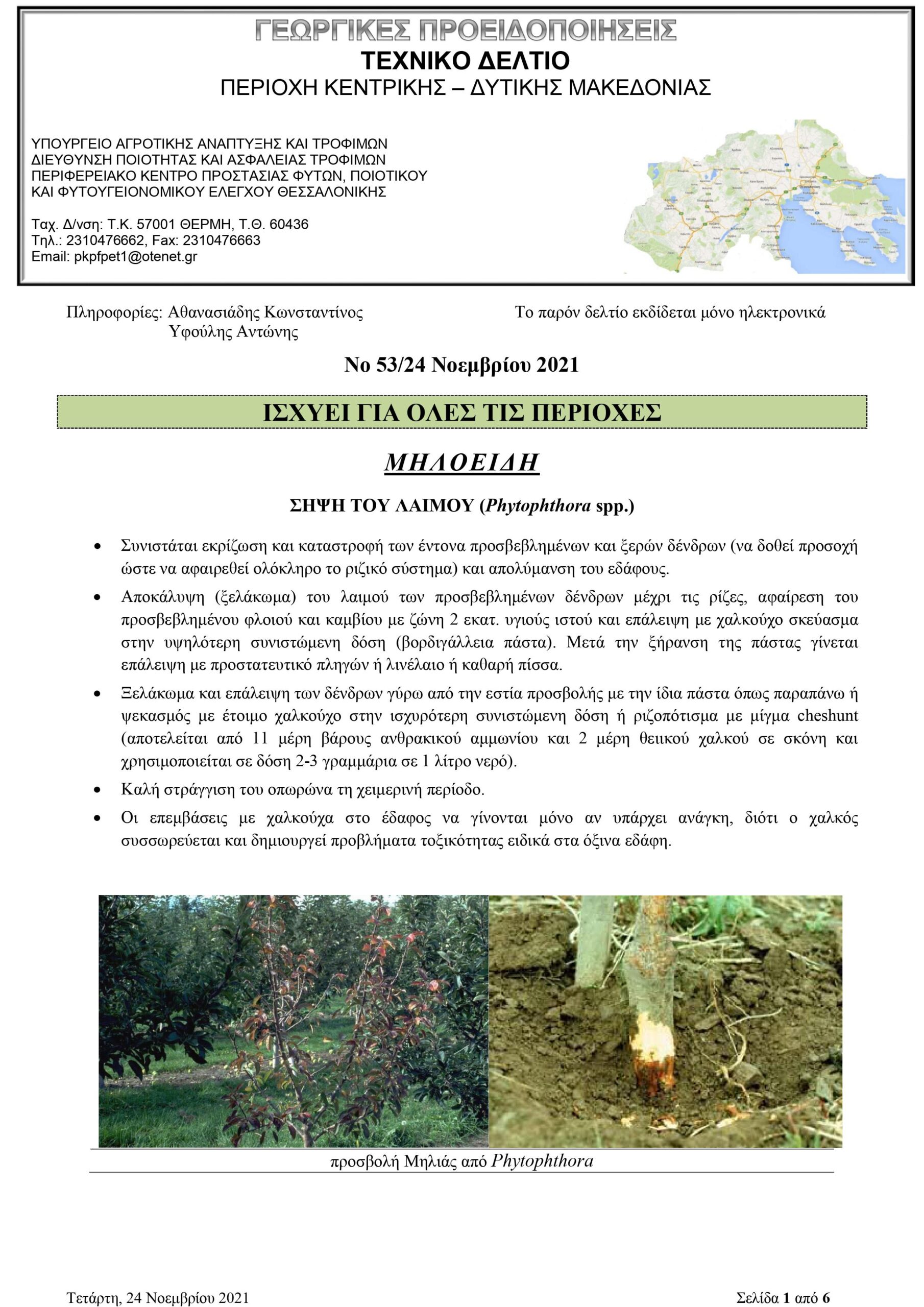 Παρακάτω, μπορείτε να δείτε το Τεχνικό Δελτίο Γεωργικών Προειδοποιήσεων, του Περιφερειακού Κέντρου Προστασίας Φυτών, Ποιοτικού & Φυτοϋγειονομικού Ελέγχου Θεσσαλονίκης, με σημαντικές προειδοποιήσεις για τα Μηλοειδή.