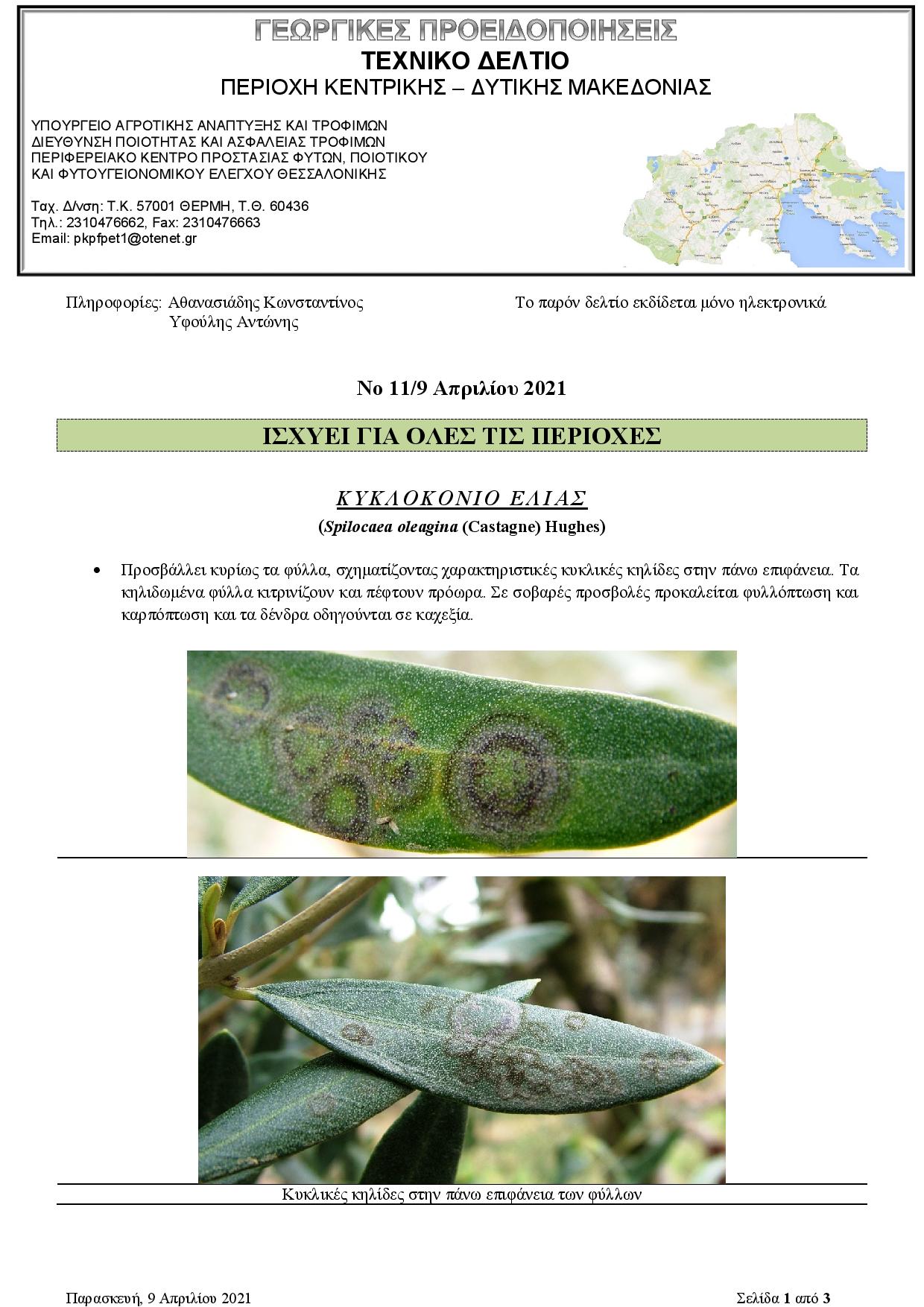 Παρακάτω, μπορείτε να δείτε το Τεχνικό Δελτίο Γεωργικών Προειδοποιήσεων, του Περιφερειακού Κέντρου Προστασίας Φυτών, Ποιοτικού & Φυτοϋγειονομικού Ελέγχου Θεσσαλονίκης, με σημαντικές προειδοποιήσεις σχετικά με το:
