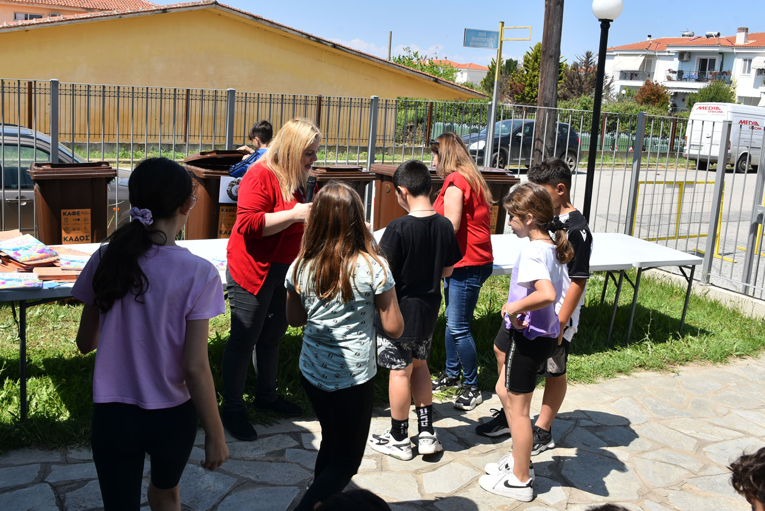 Από τις αρχές του επόμενου μήνα πιλοτικά θα τοποθετηθούν καφέ κάδοι σε ξενοδοχειακές μονάδες και εστιατόρια και σταδιακά σε ολόκληρο τον δήμο μας. Οι μαθητές ενημερώθηκαν για τα σημαντικά οφέλη της κομποστοποίησης αλλά κυρίως και για τον τρόπο με τον οποίο ξεχωρίζουμε τα υλικά που απορρίπτουμε μέσα στους καφέ κάδους. Μέσα από διαδραστικό παιχνίδι έμαθαν διαλέγοντας τις κατάλληλες καρτέλες με τρόφιμα ή υλικά για κομποστοποίηση ή απέρριπταν αυτές που δεν ήταν κατάλληλες. Παράλληλα η συγγραφέας Παναγιώτα Θωμασούλη παρουσίασε το κεφάλαιο του βιβλίου της «Ο καλλιτέχνης του βυθού βρήκε τον δρόμο τ’ ουρανού» που είναι αφιερωμένο στην ανακύκλωση με τη συμμετοχή της εκπαιδευτικού Ελευθερίας Ηλιοπούλου. Στη δράση παρευρέθηκε ο Δήμαρχος Μ. Καρράς που είχε τη δυνατότητα να συνομιλήσει με τα παιδιά και να τους κάνει ερωτήσεις σχετικές με το θέμα, καθώς και ο αρμόδιος αντιδήμαρχος Χ. Σαρόγλου.