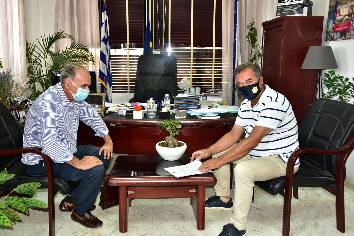 Ξεκινά η κατασκευή των αποχετευτικών δικτύων Πορταριάς και Διονυσίου (χωριό) μετά την υπογραφή της σύμβασης εκτέλεσης έργου από τον Δήμαρχο Μ. Καρρά και τον εκπρόσωπο της αναδόχου εταιρείας “Τεχνική Ανάπτυξη ΑΤΕΒΕ”, Γ. Μαρκογιαννάκη.