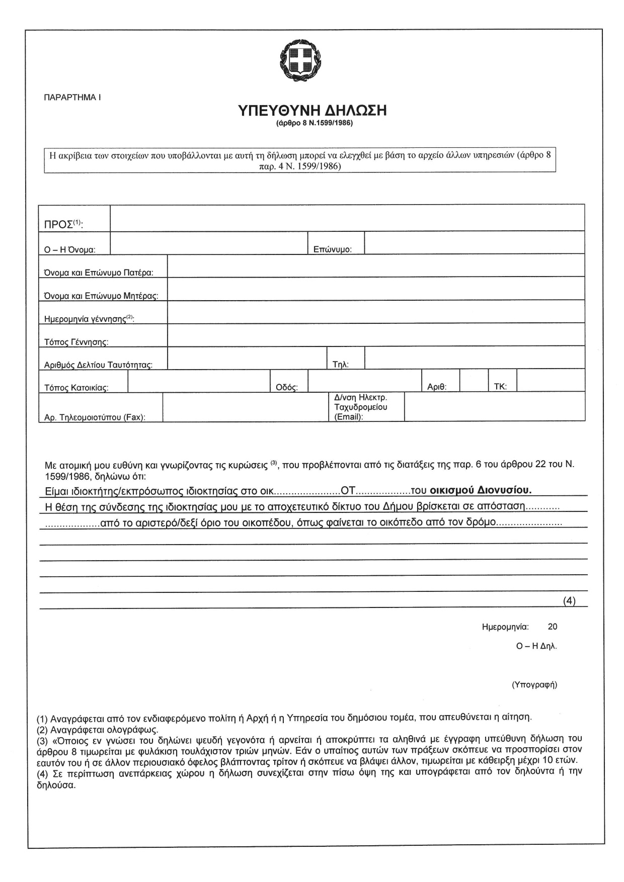 ♦Δείτε στις εικόνες τη σχετική υπεύθυνη δήλωση, καθώς και το χάρτη του τμήματος του οικισμού που αφορά η παρούσα ανακοίνωση.