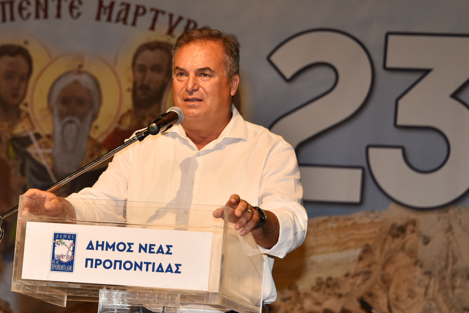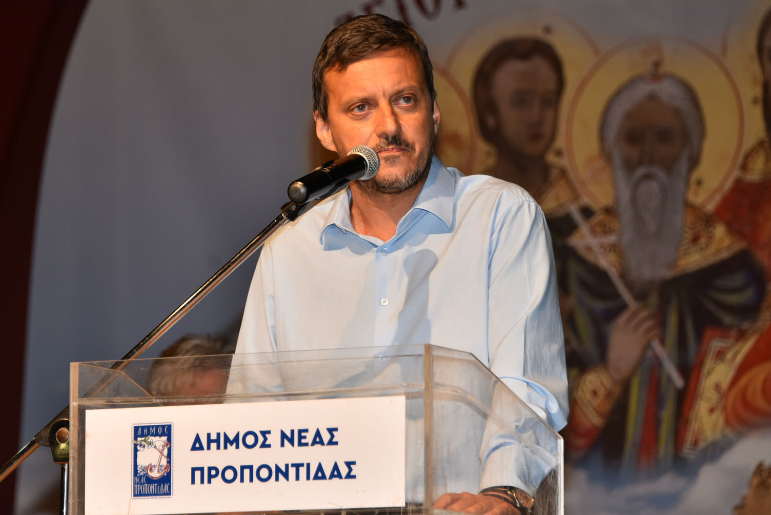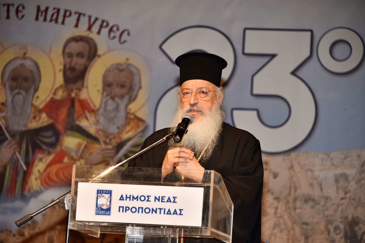 Μέσα σε κλίμα συγκίνησης έγινε η παράδοση της Ιεράς εικόνας του Αγίου Βασιλείου στον Λαογραφικό όμιλο Σημάντρων, που διοργανώνει το φετινό αντάμωμα το οποίο τελεί υπό την αιγίδα του Δήμου Ν. Προποντίδας. Χαιρετισμούς απηύθυναν εκ μέρους του Οικουμενικού Πατριάρχη κ.κ. Βαρθολομαίου ο Σεβασμιώτατος Μητροπολίτης Προύσης κ.κ. Ιωακείμ Μπίλης, ο Σεβασμιώτος Μητροπολίτητς Κασσανδρείας κ.κ. Νικόδημος, ο Περιφερειάρχης Κεντρικής Μακεδονίας Απόστολος Τζιτζικώστας, ο Δήμαρχος Νέας Προποντίδας Μανώλης Καρράς, οι βουλευτές του νομού μας: Ιωάννης Γιώργος και Απόστολος Πάνας, καθώς και η πρόεδρος του Λαογραφικού ομίλου Σημάντρων Μαραγκοπούλου Σουλτάνα.