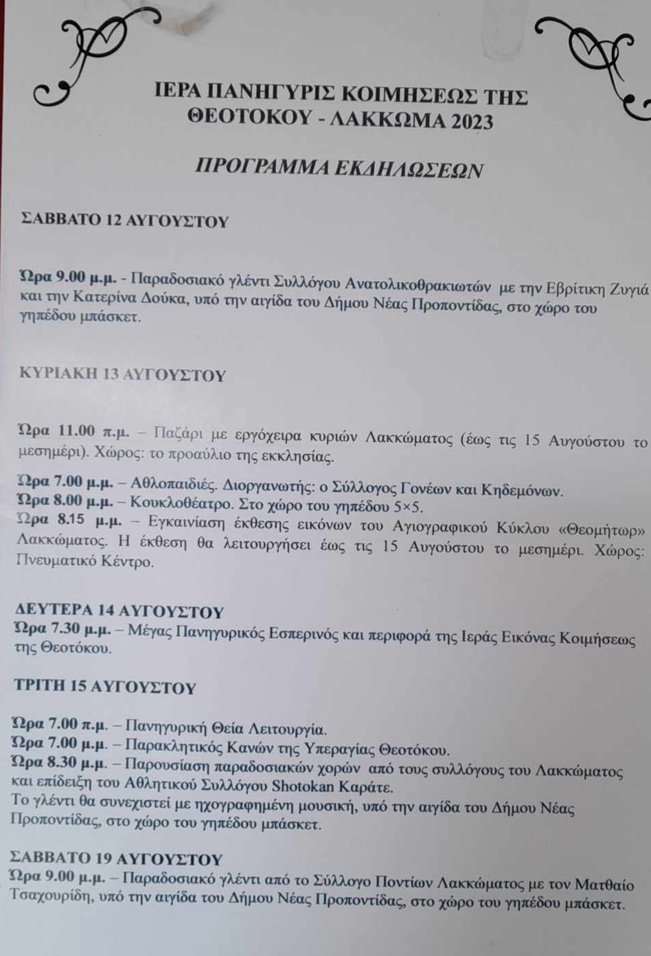 Ξεκινούν σήμερα οι εκδηλώσεις για τον Εορτασμό της Κοιμήσεως της Θεοτόκου στο Λάκκωμα