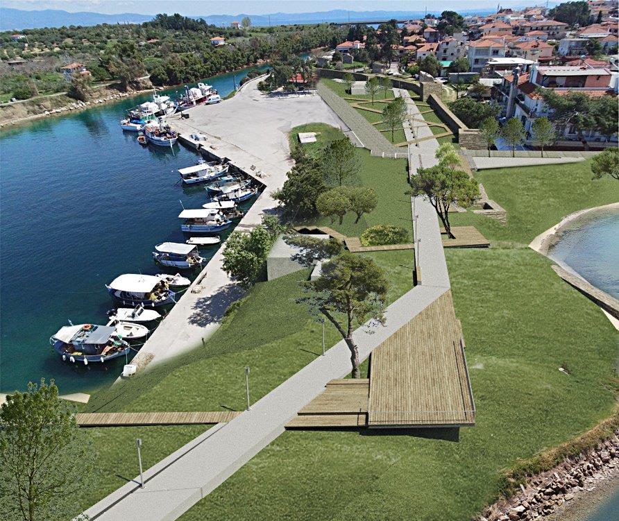 • Η τρίτη περιοχή που περιλαμβάνει η πρόταση είναι το τμήμα που στην υπάρχουσα κατάσταση υπάρχει μια πλατεία στο τμήμα γης ανάμεσα στο αλιευτικό καταφύγιο που βρίσκεται βόρεια του διατειχίσματος και στο δυτικό θαλάσσιο όριο της περιοχής, η οποία ενώ έχει άμεση οπτική επαφή με το θαλάσσιο τμήμα του διατειχίσματος (Π17-Π18).